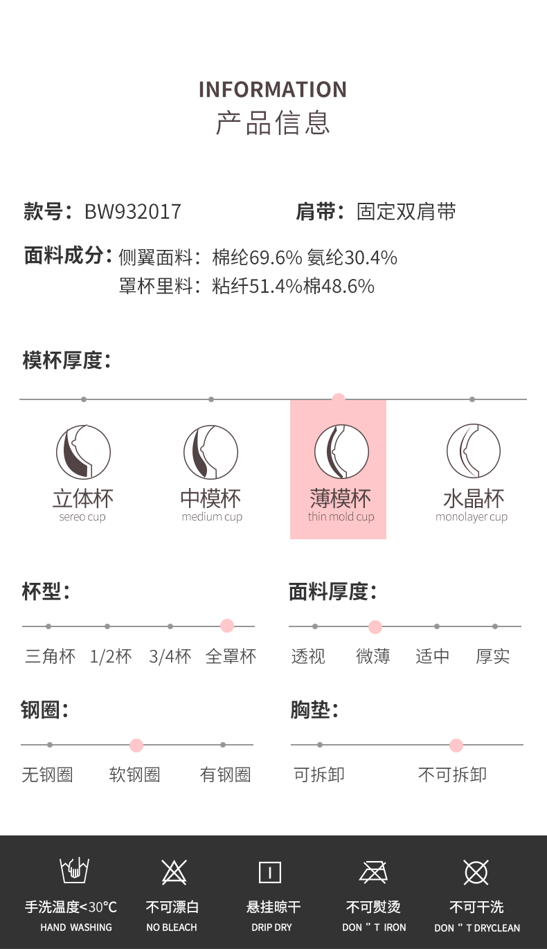 贝佳人文胸深V超薄杯包容软钢圈上托大胸显小内衣女BW932017