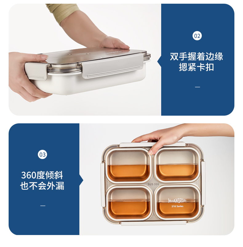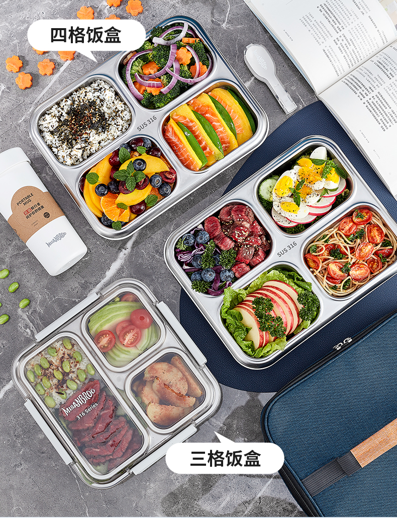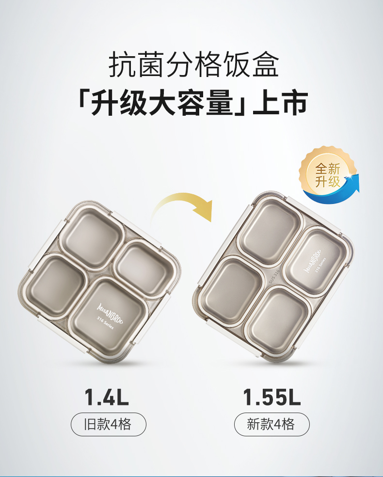 【芬兰MISANBROO】米膳葆抗菌型316不锈钢四格分格饭盒1550ml