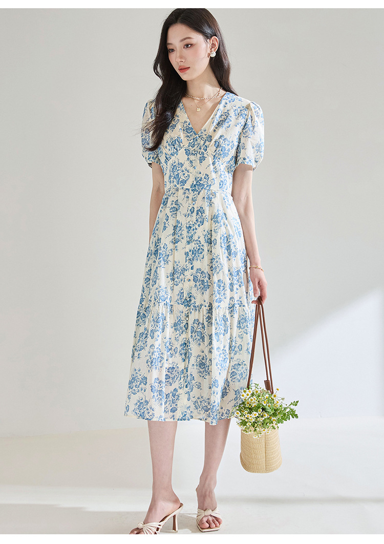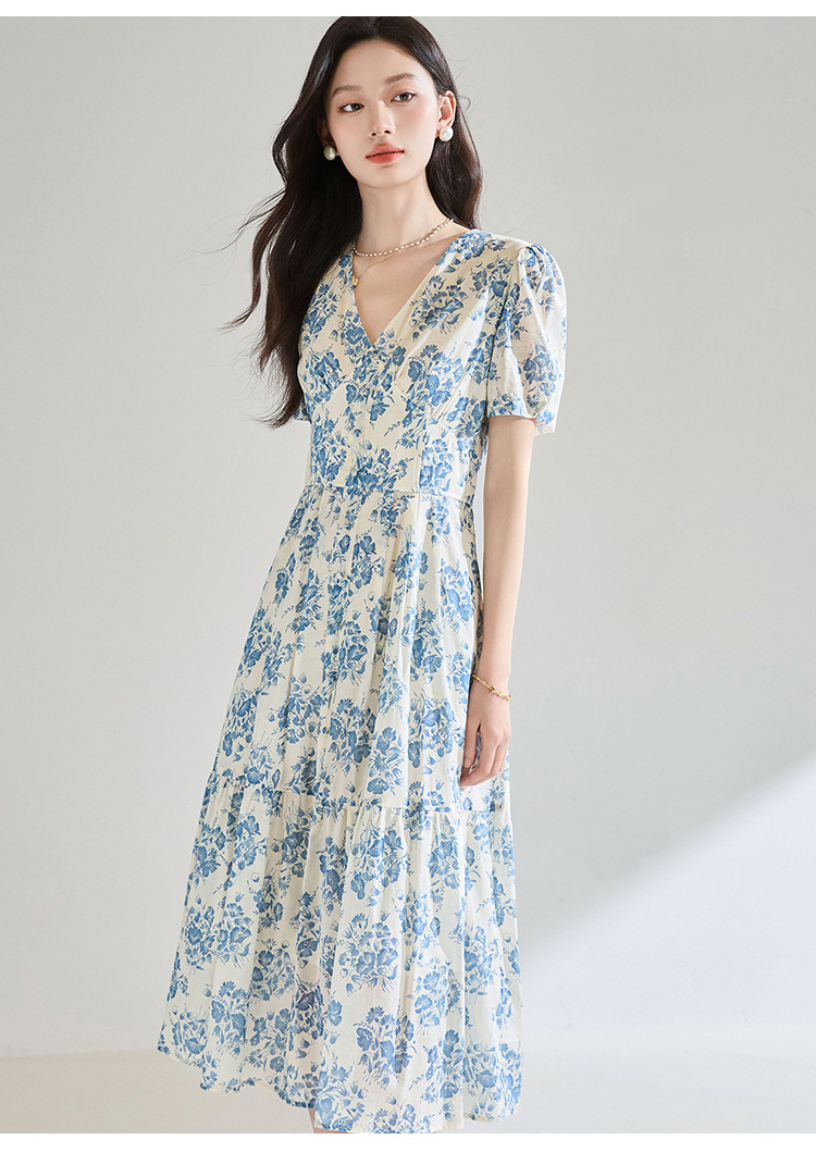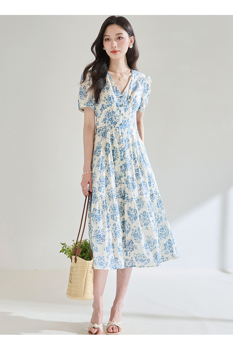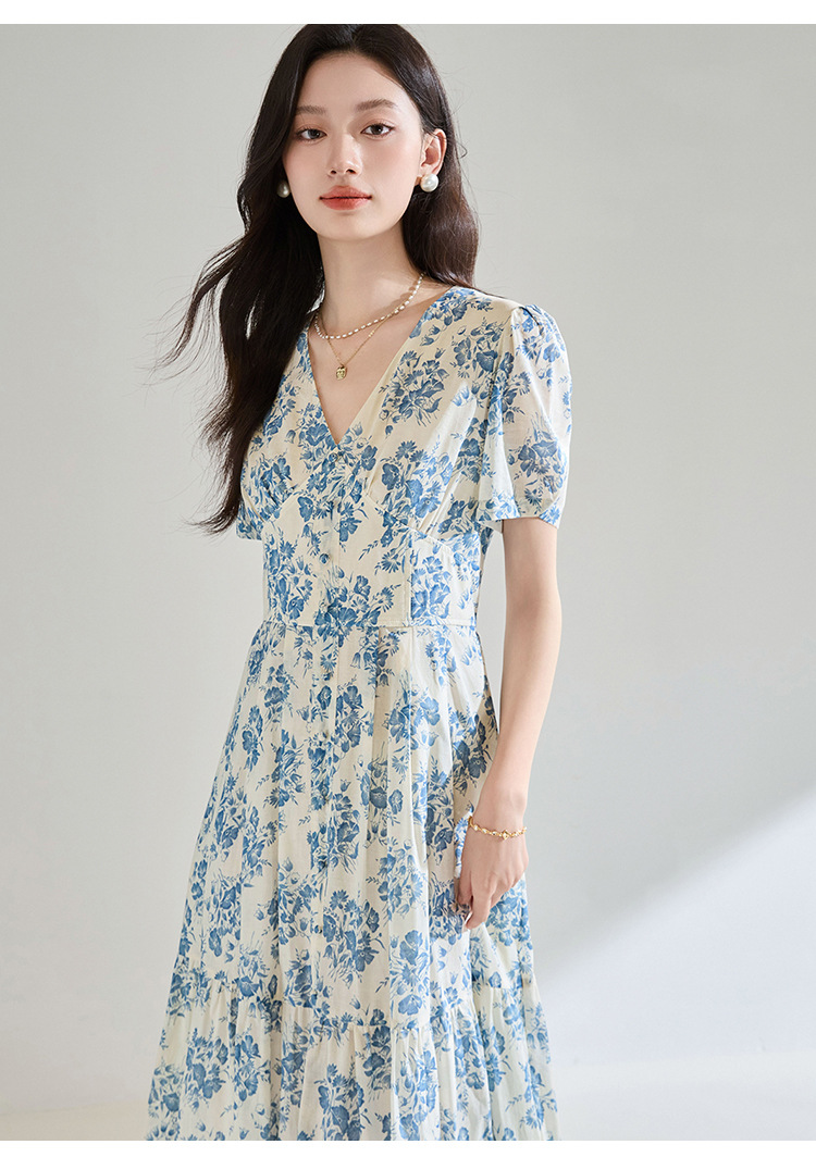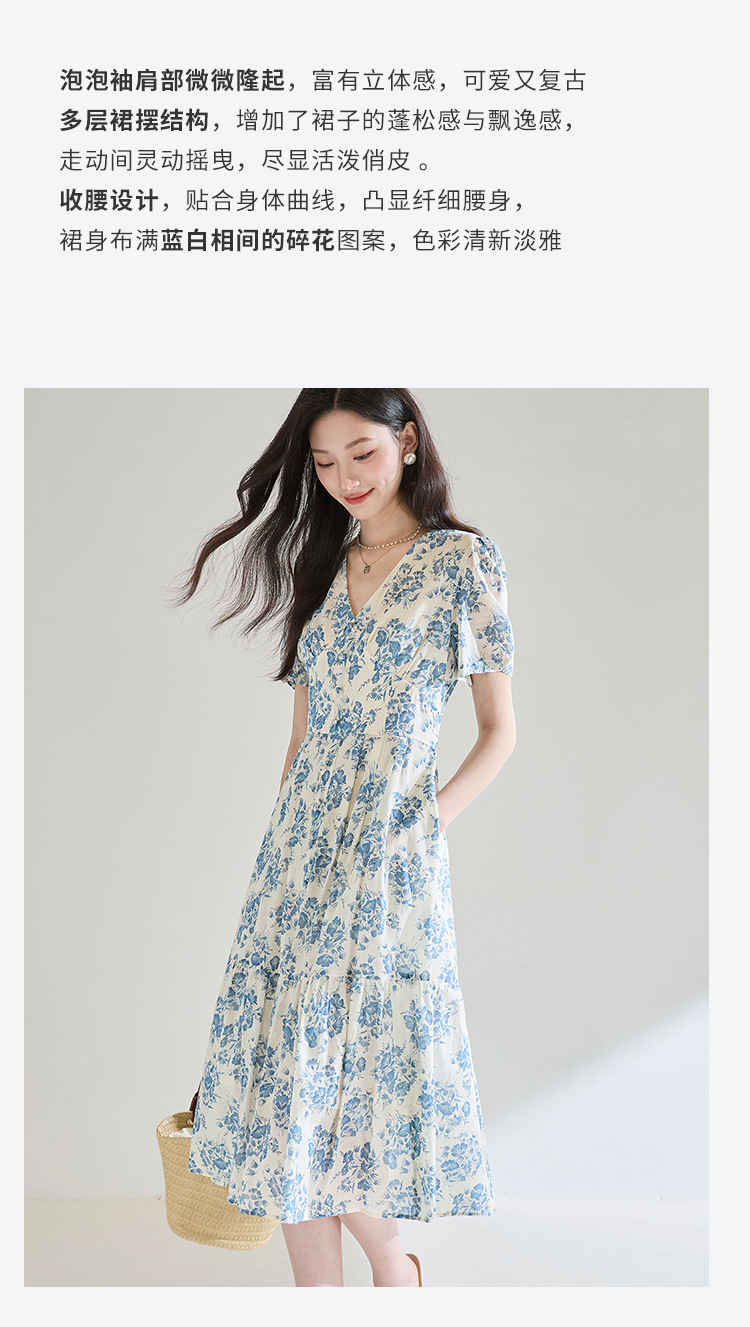 【高货sh】全新升级【铂金会员266/天猫359/差价93】(03521)洛诗琳法式气质V领碎花连衣裙2025夏季修身系带茶歇裙