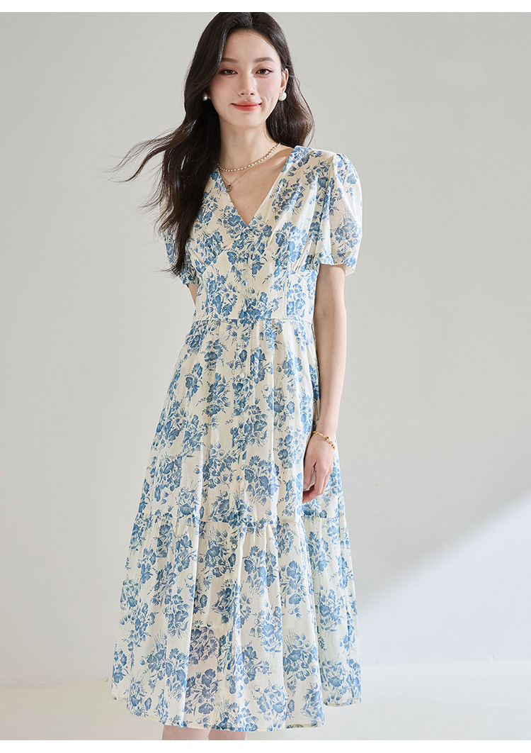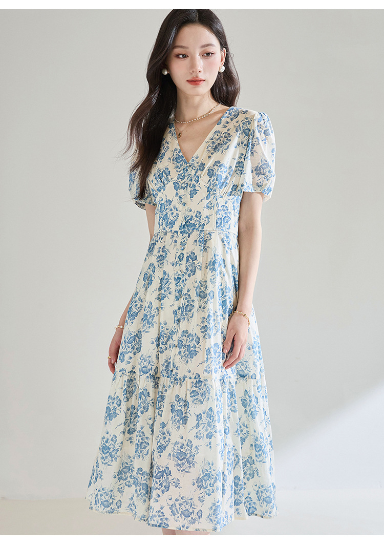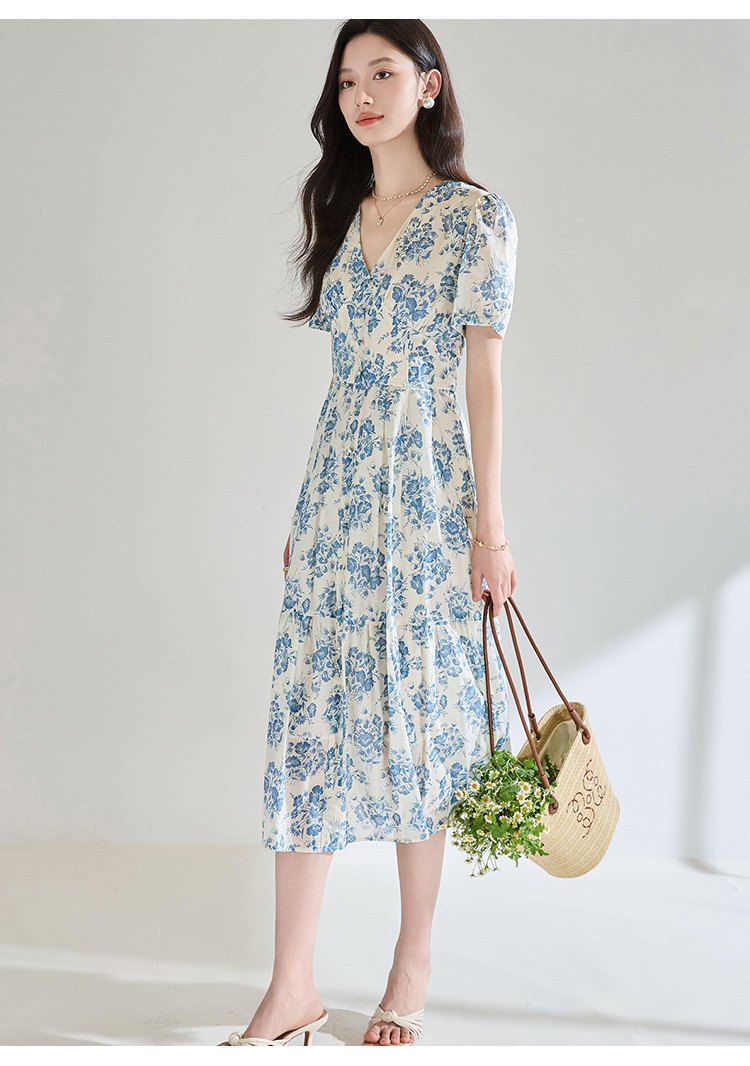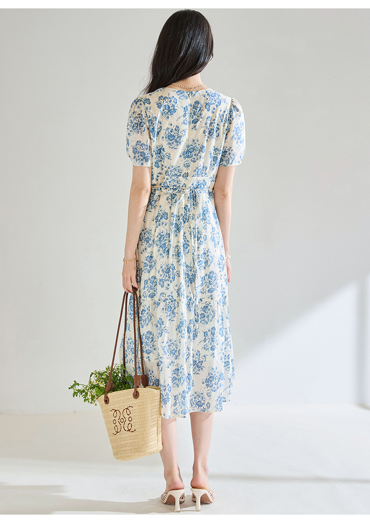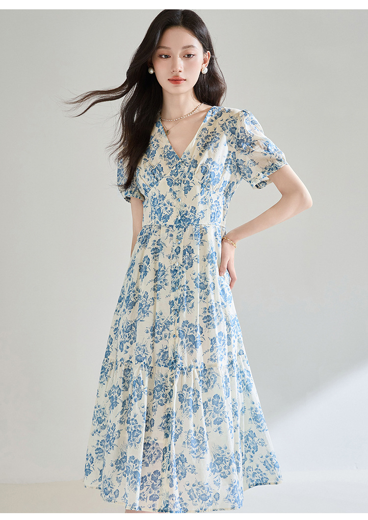 【高货sh】全新升级【铂金会员266/天猫359/差价93】(03521)洛诗琳法式气质V领碎花连衣裙2025夏季修身系带茶歇裙