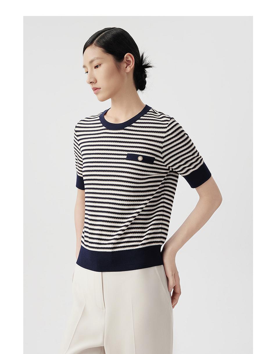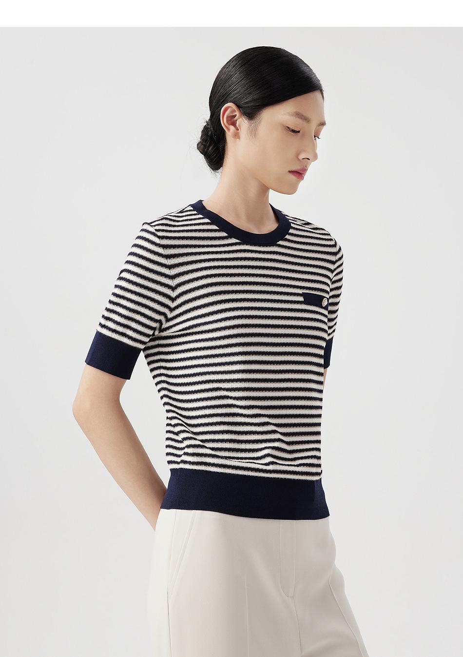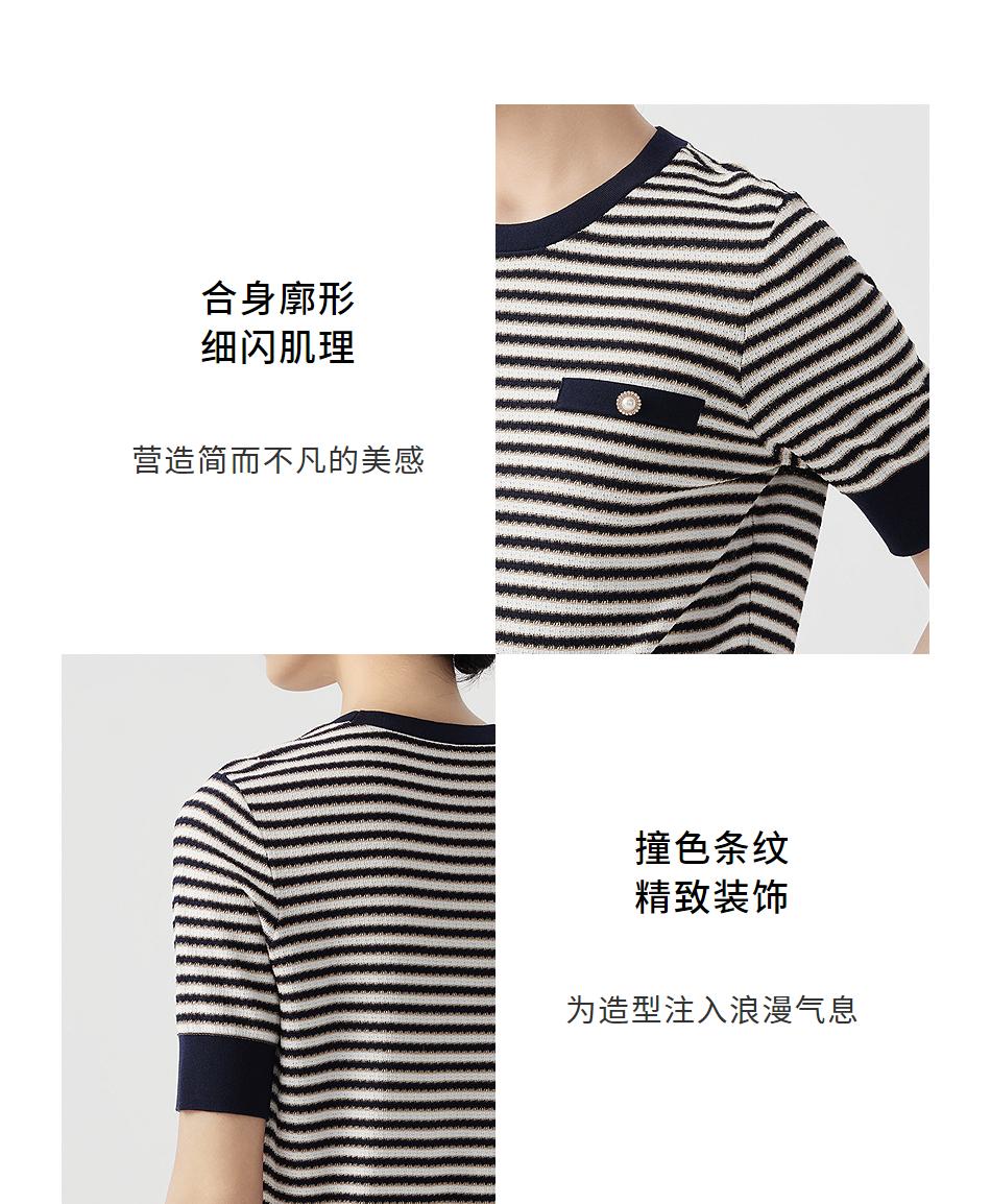 朗姿短袖圆领针织衫女薄款通勤套头短上衣LCET01KPR263