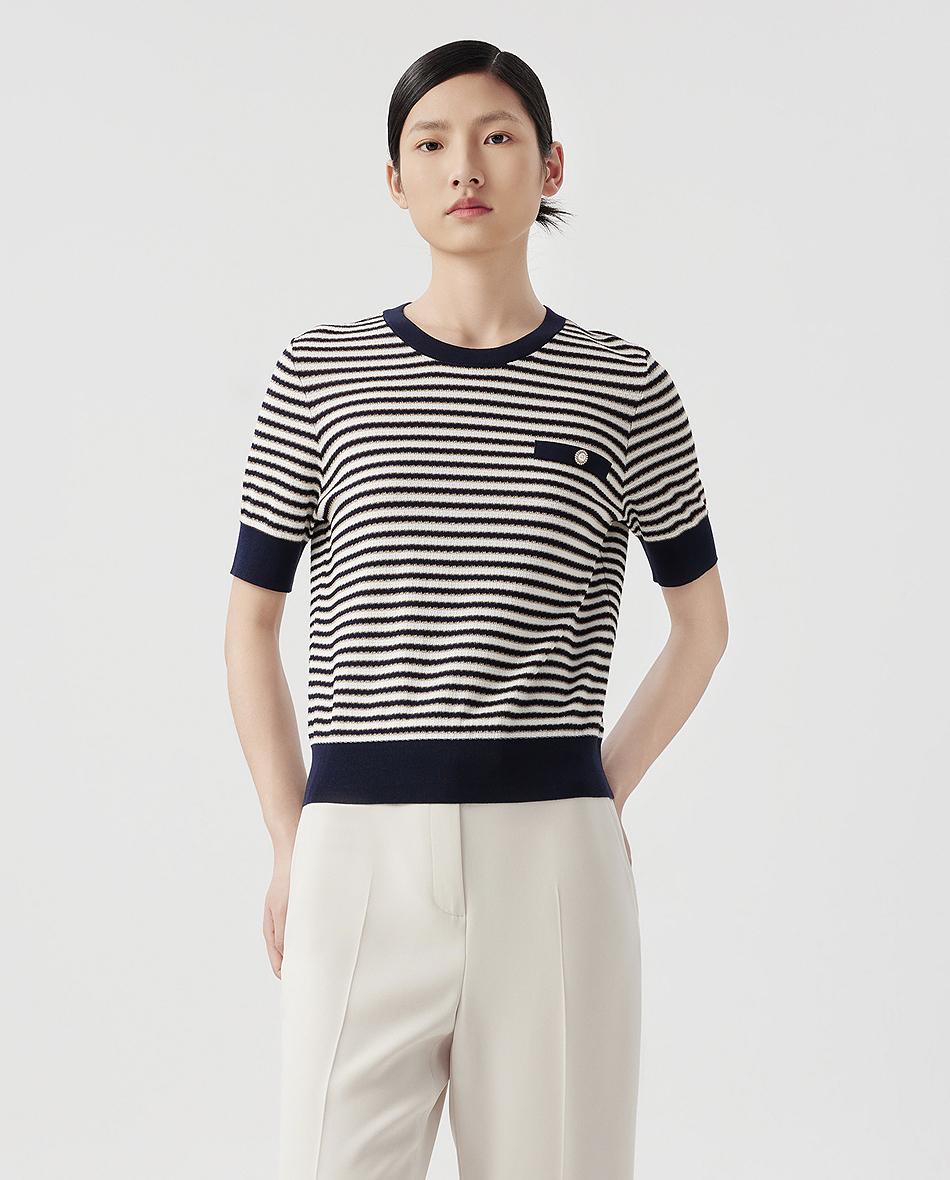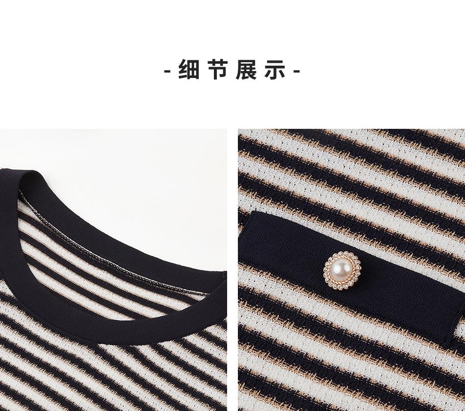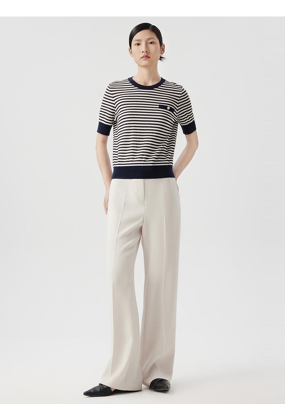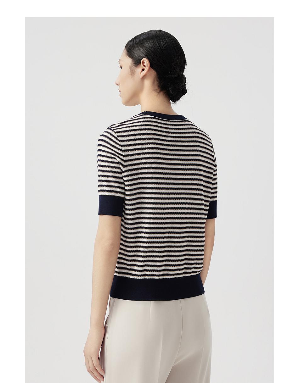 朗姿短袖圆领针织衫女薄款通勤套头短上衣LCET01KPR263