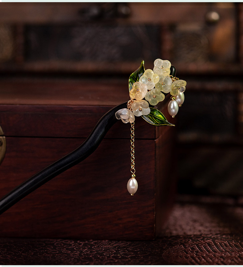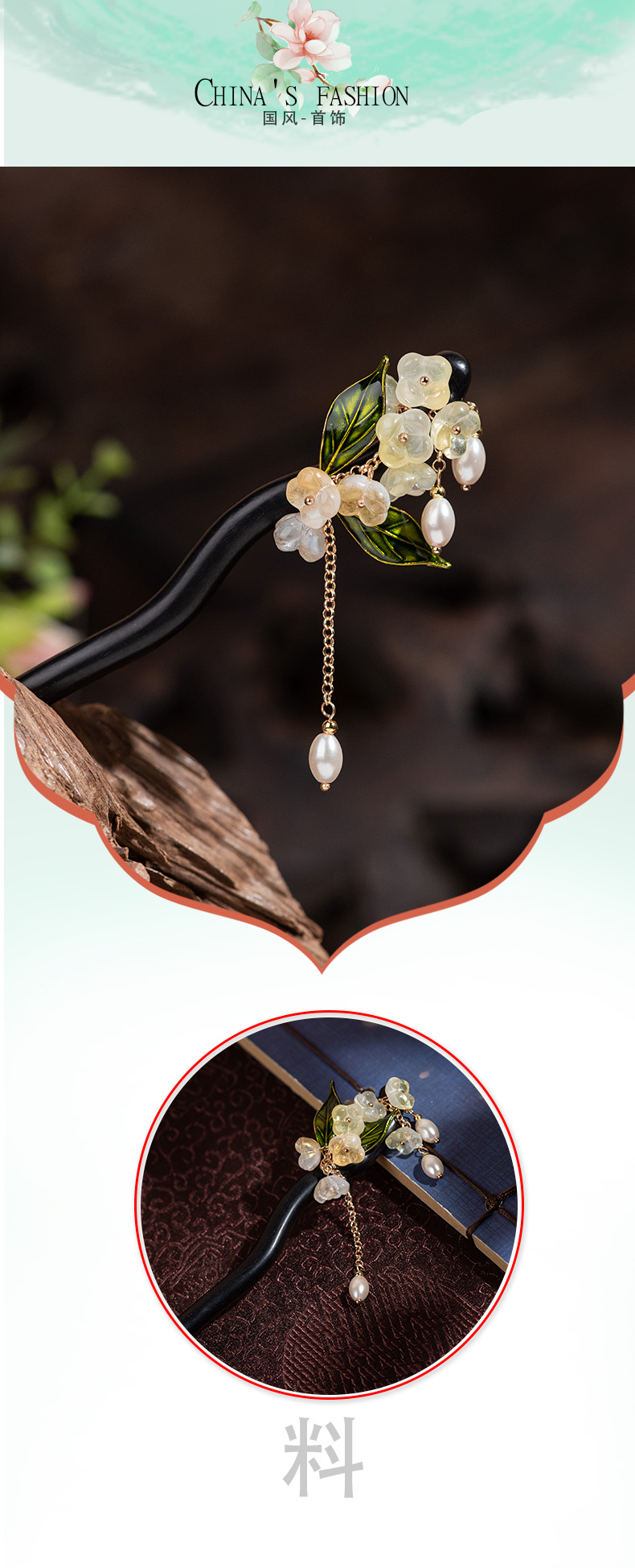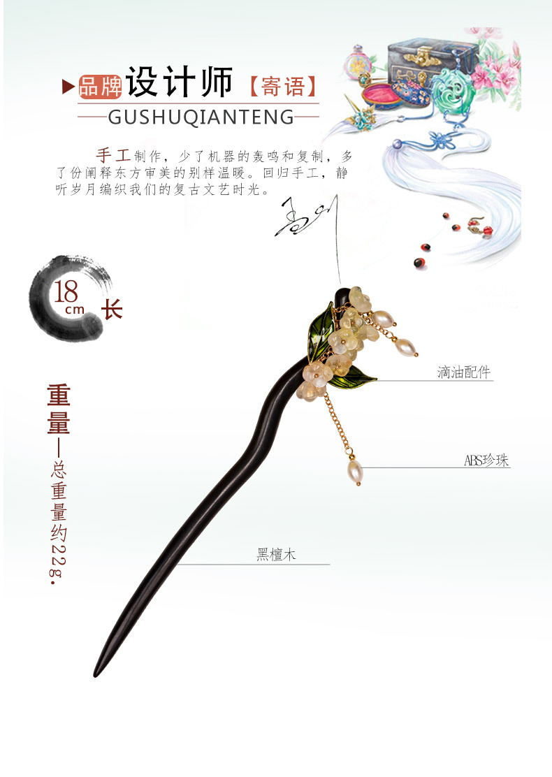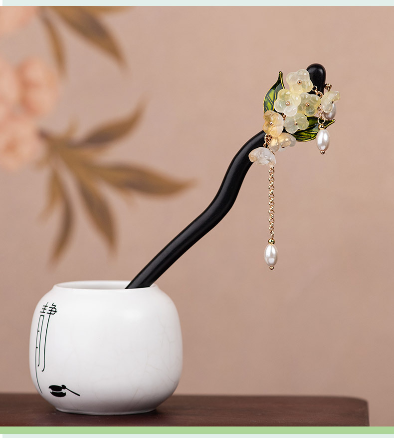 JGL黑檀木发簪发饰铃兰花流苏气质汉服发饰古风盘发头饰简约簪子批发