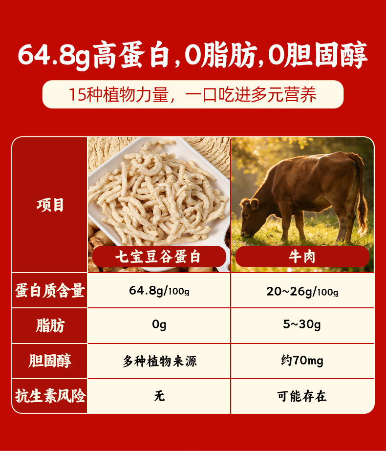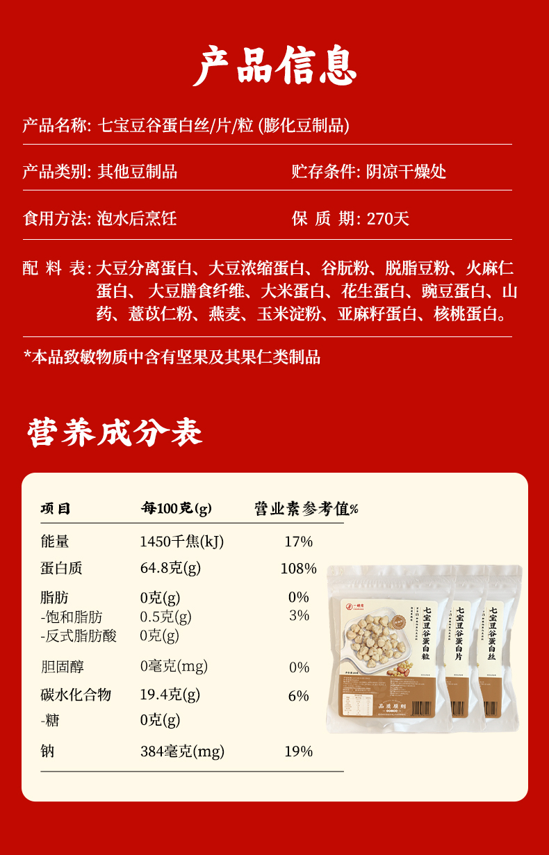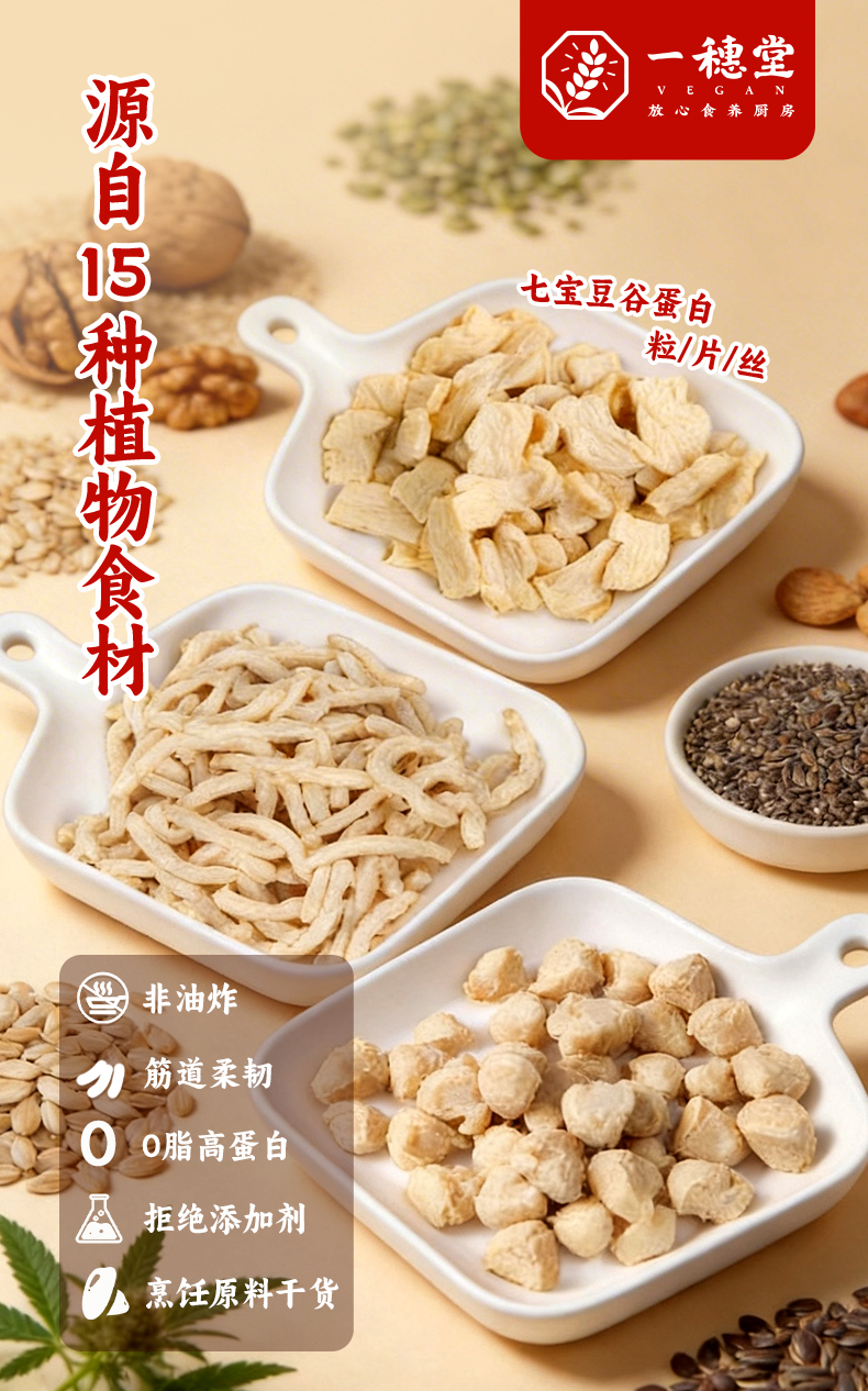 七宝豆谷拉丝蛋白 | 100g/袋 蛋白片/丝/粒 非油炸高蛋白植物肉 轻食饱腹 一穗堂「3袋起包邮」