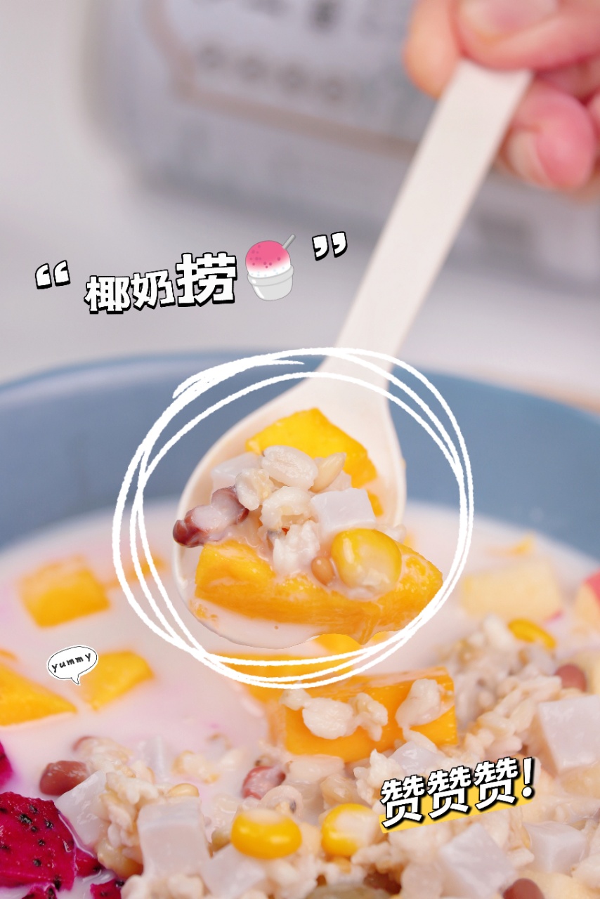 玉米,粗粮饱腹的另一个武器,清爽版八宝粥,除了大米燕麦,还有玉米呢...全五谷椰奶捞,下午不吃饭也不会饿啦!