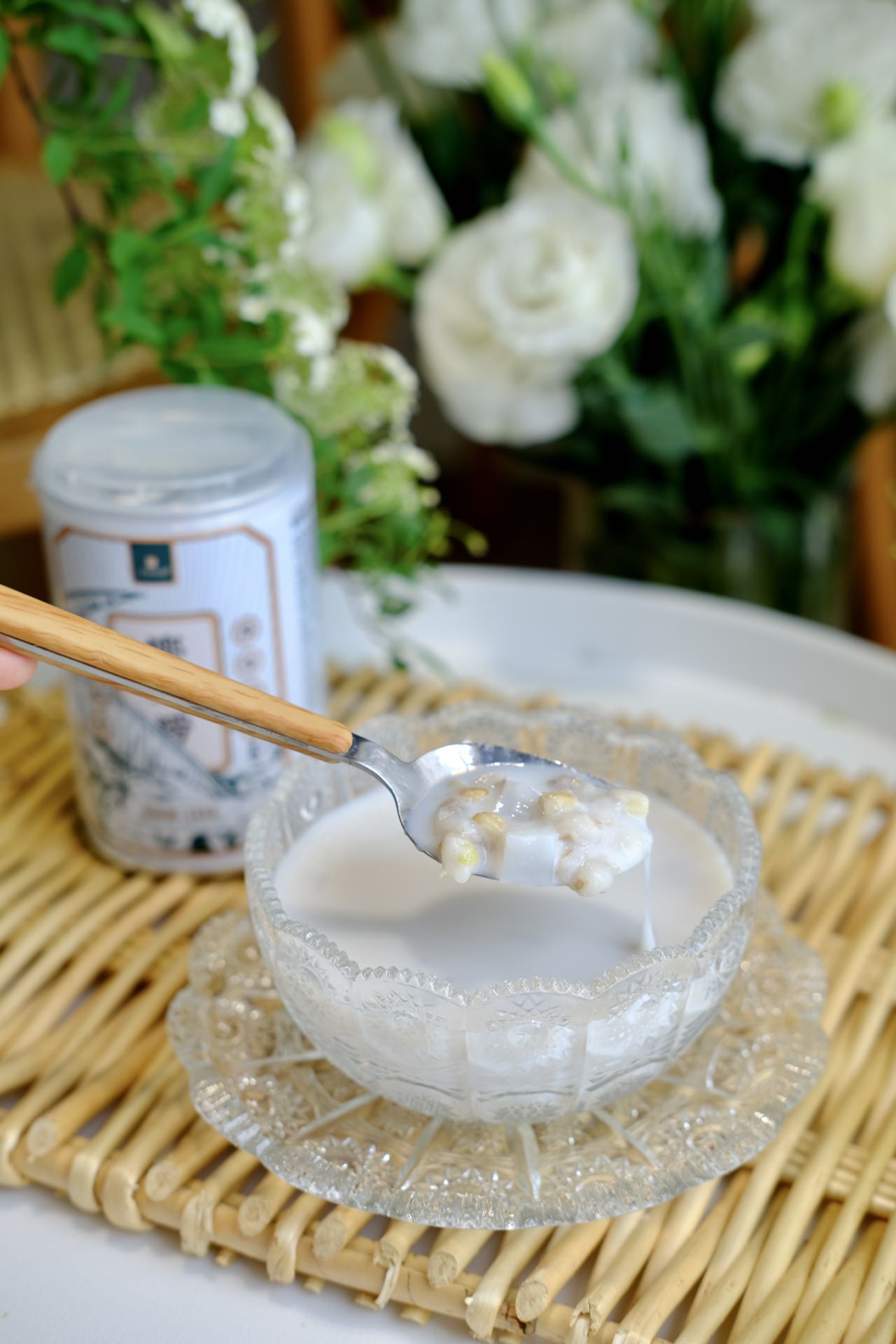 薏仁,完全不硬而是糯叽叽,能把薏仁做出糯叽叽...完全不会忽然有硬口的感觉和椰奶一并喝下都毫无违和!
