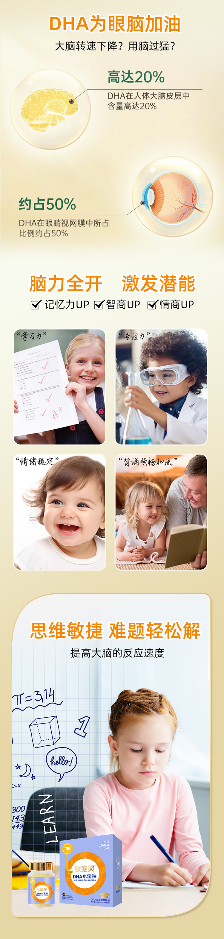 728肽脑灵DHA小金珠180粒【拍1发2】