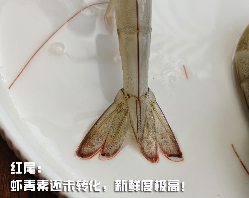 平时我们解冻30分钟后这层青色就会逐渐消失,虾头内红色的膏就会映出来,这时候虾头已经变红,但是我们食用起来虾依然新鲜,所以只要虾头是青色就不存在变质的可能!