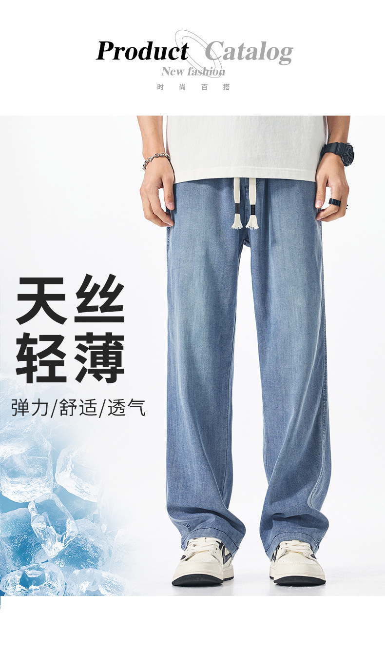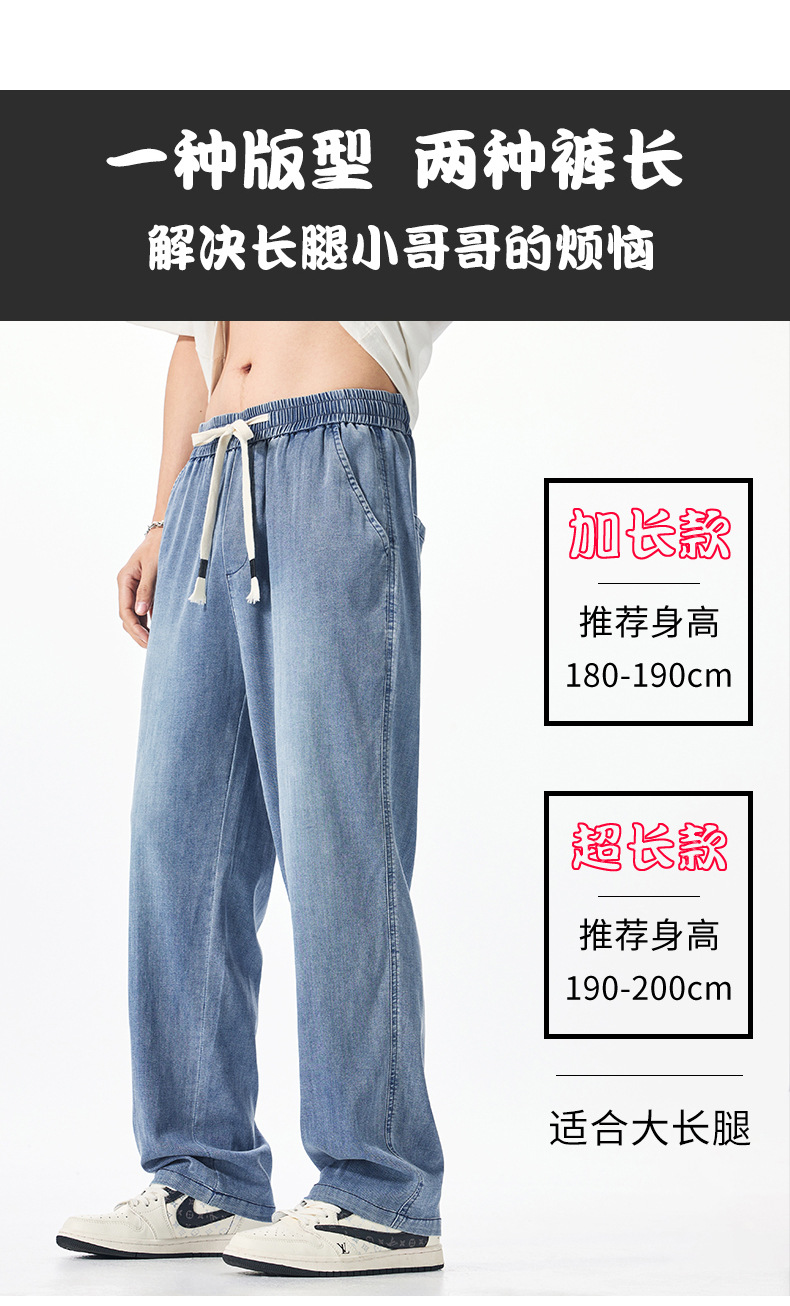 【莱赛尔天丝】【DQ】大依优型大码男装加长版牛仔裤莱赛尔天丝宽松轻薄直筒长裤夏季新品潮流胖子