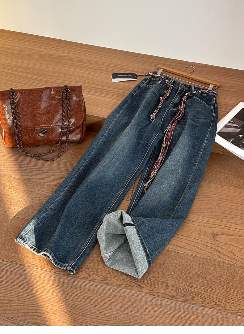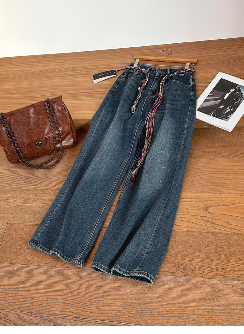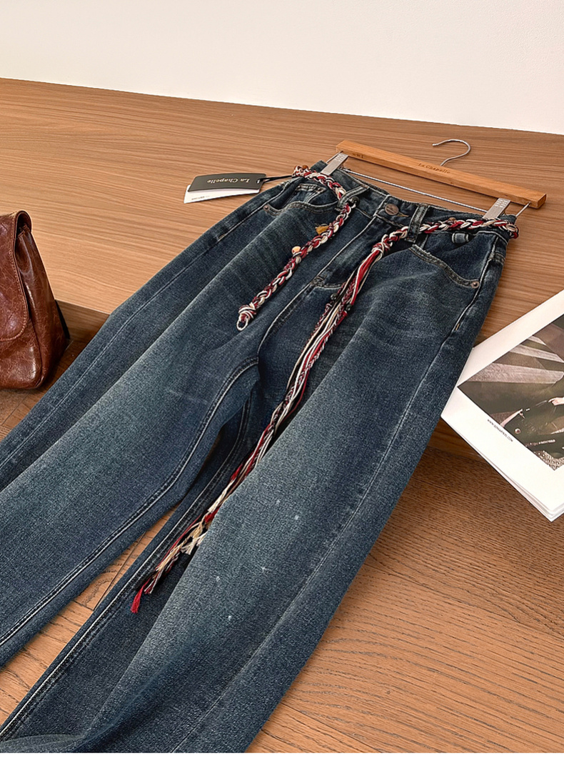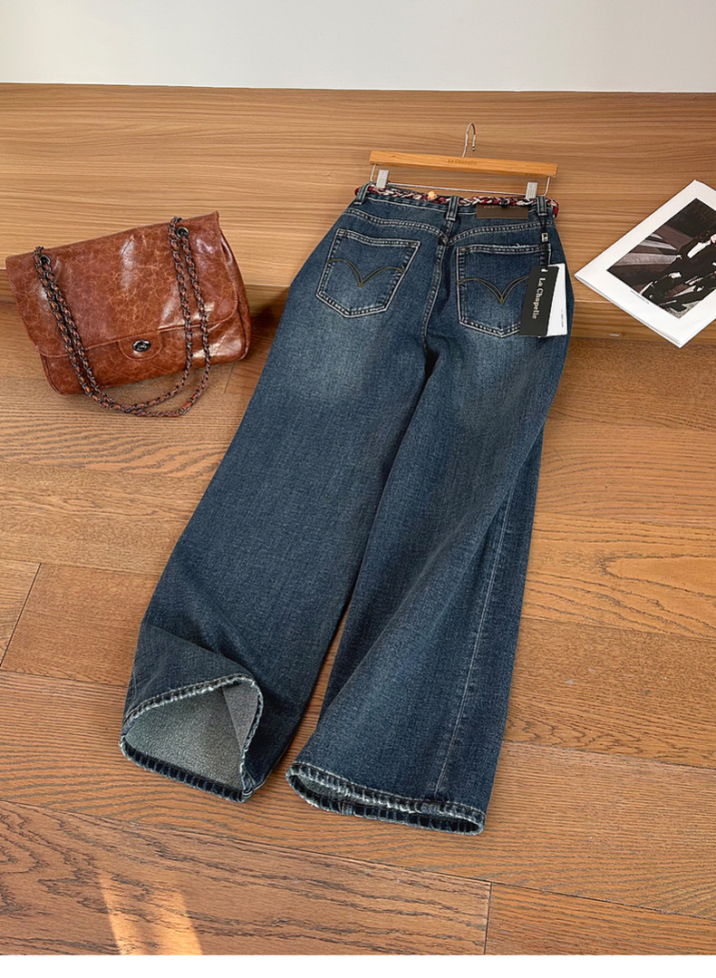 专柜实拍【磨毛/附赠腰带】拉夏贝尔/La Chapelle官网600+高品质!宽松慵懒感显瘦百搭直筒牛仔裤
