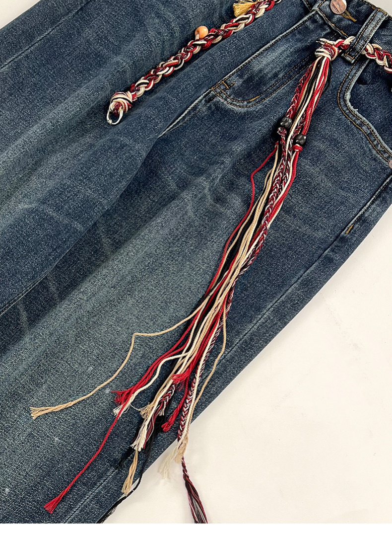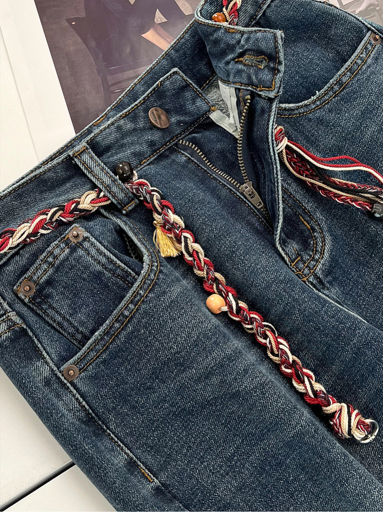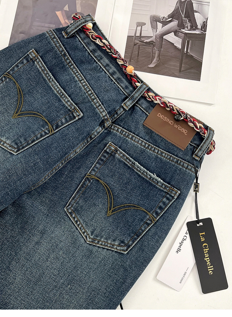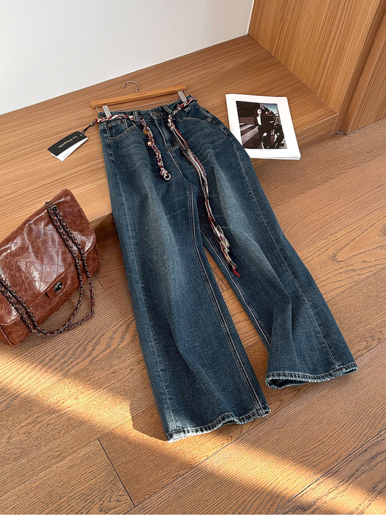 专柜实拍【磨毛/附赠腰带】拉夏贝尔/La Chapelle官网600+高品质!宽松慵懒感显瘦百搭直筒牛仔裤