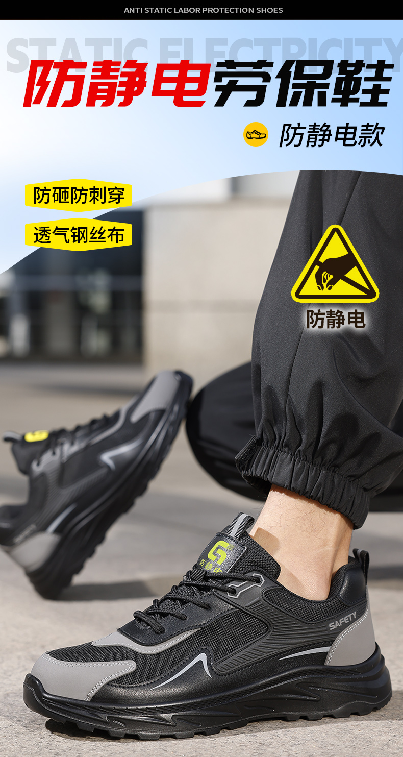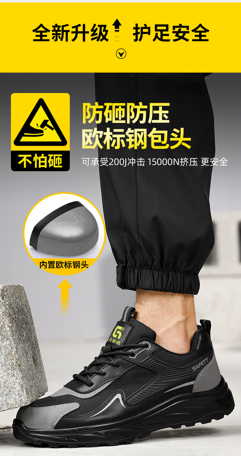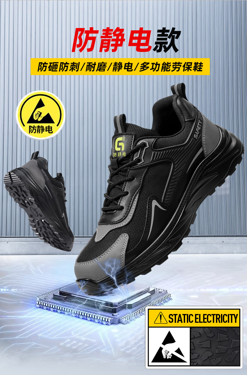 新款防静电防砸防刺工作鞋钢包头实心底LA认证专业防护安全功能鞋舒适四季款