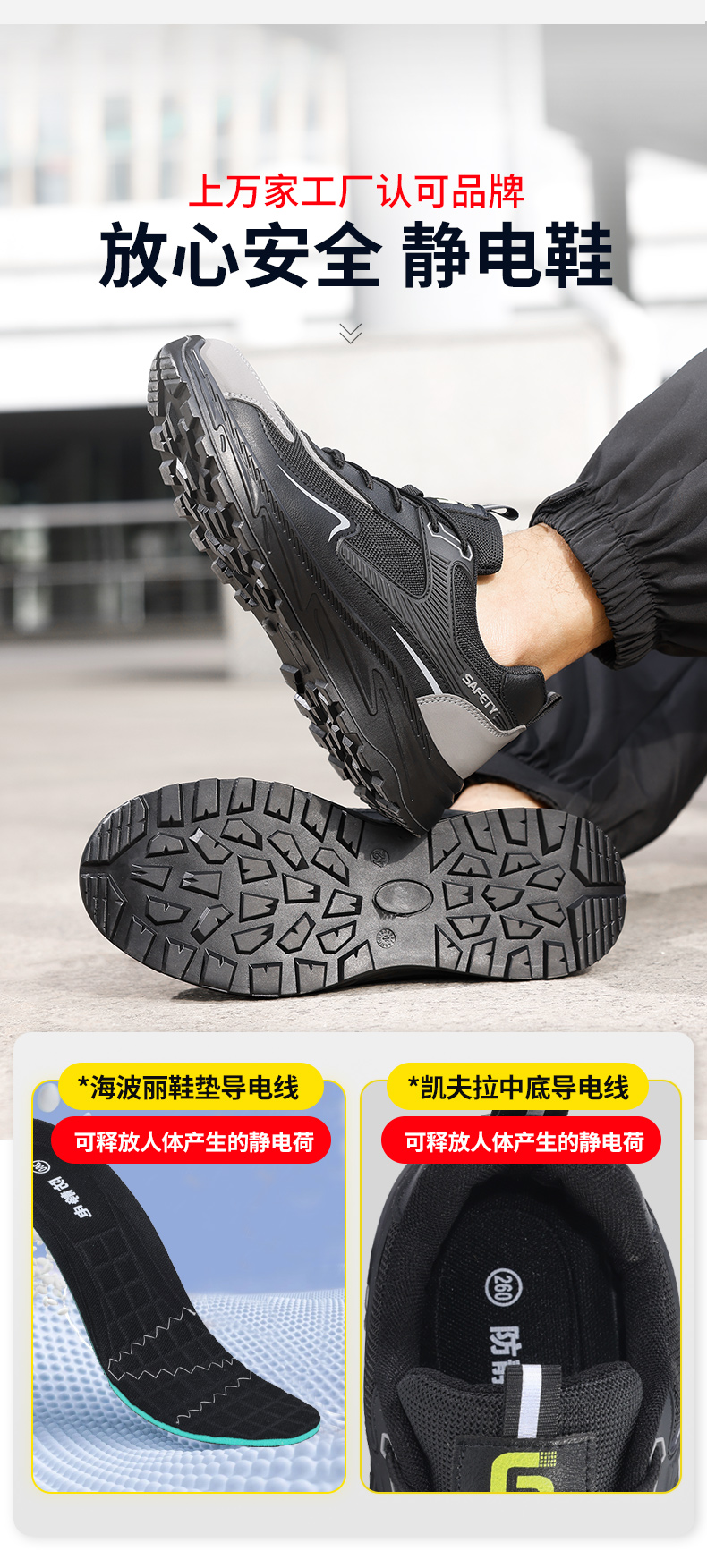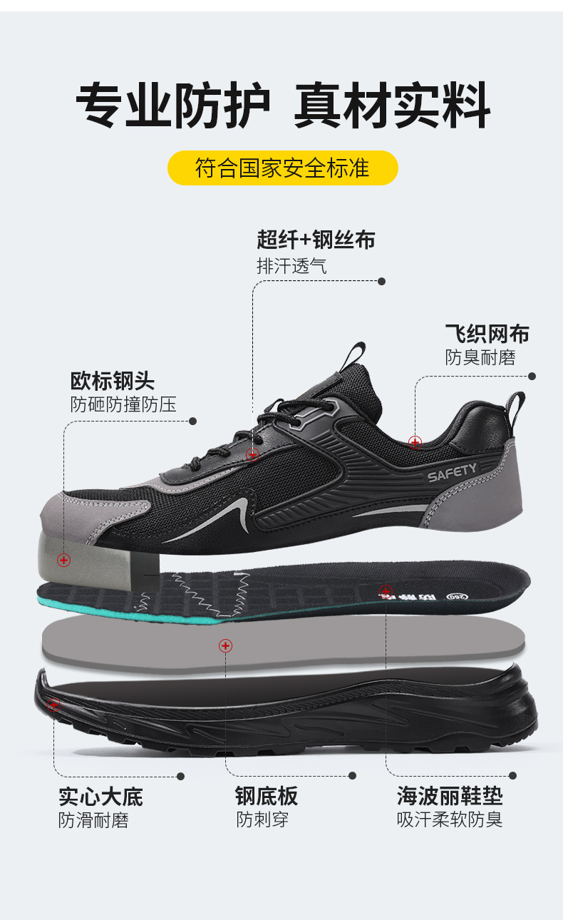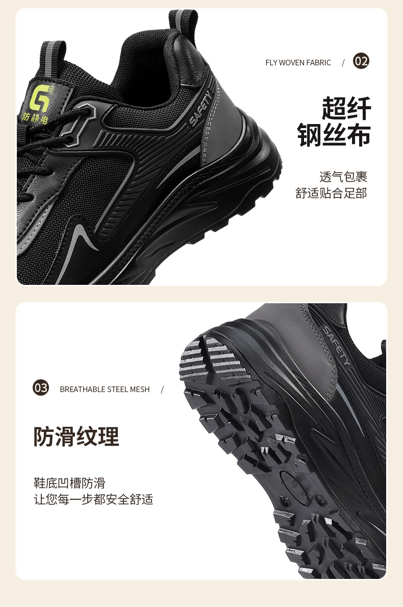 新款防静电防砸防刺工作鞋钢包头实心底LA认证专业防护安全功能鞋舒适四季款