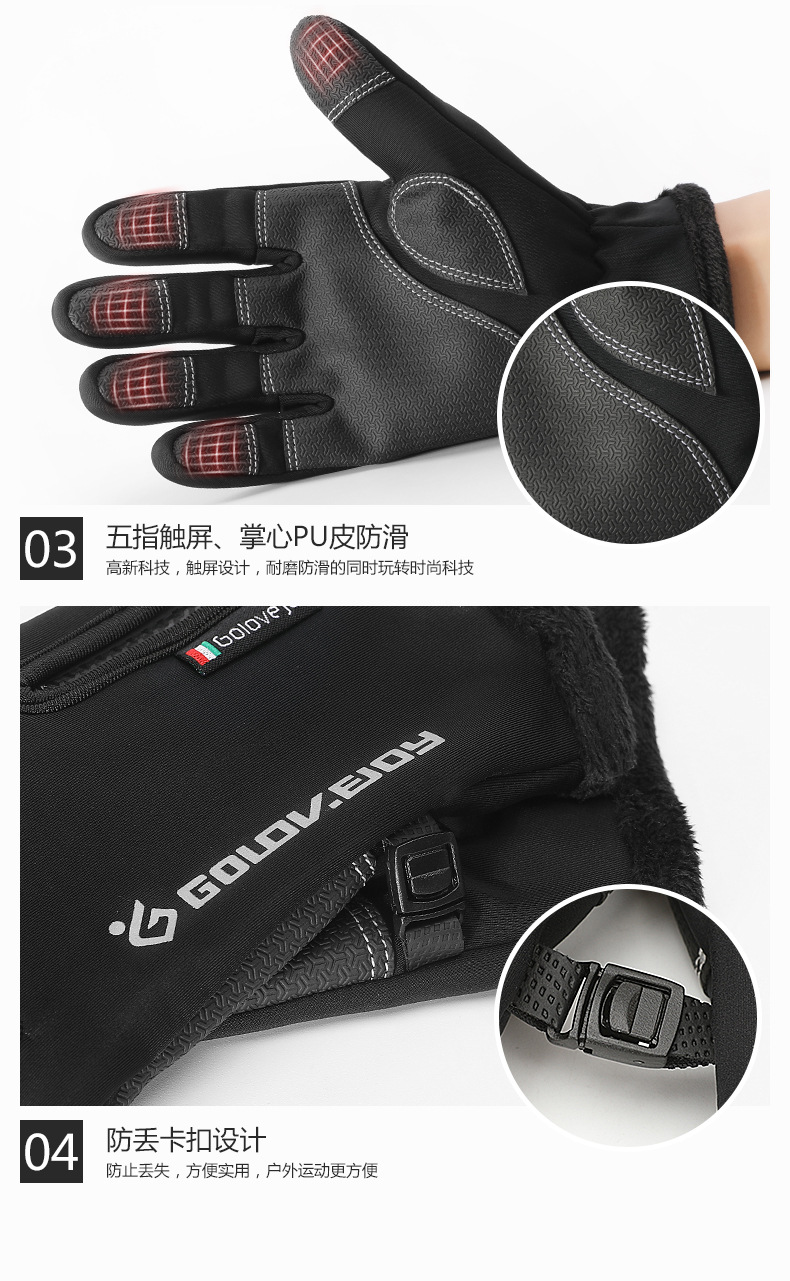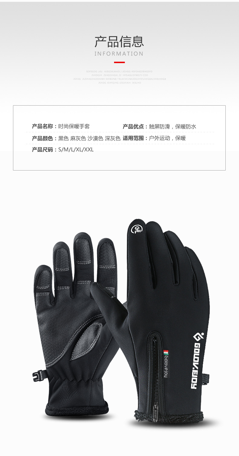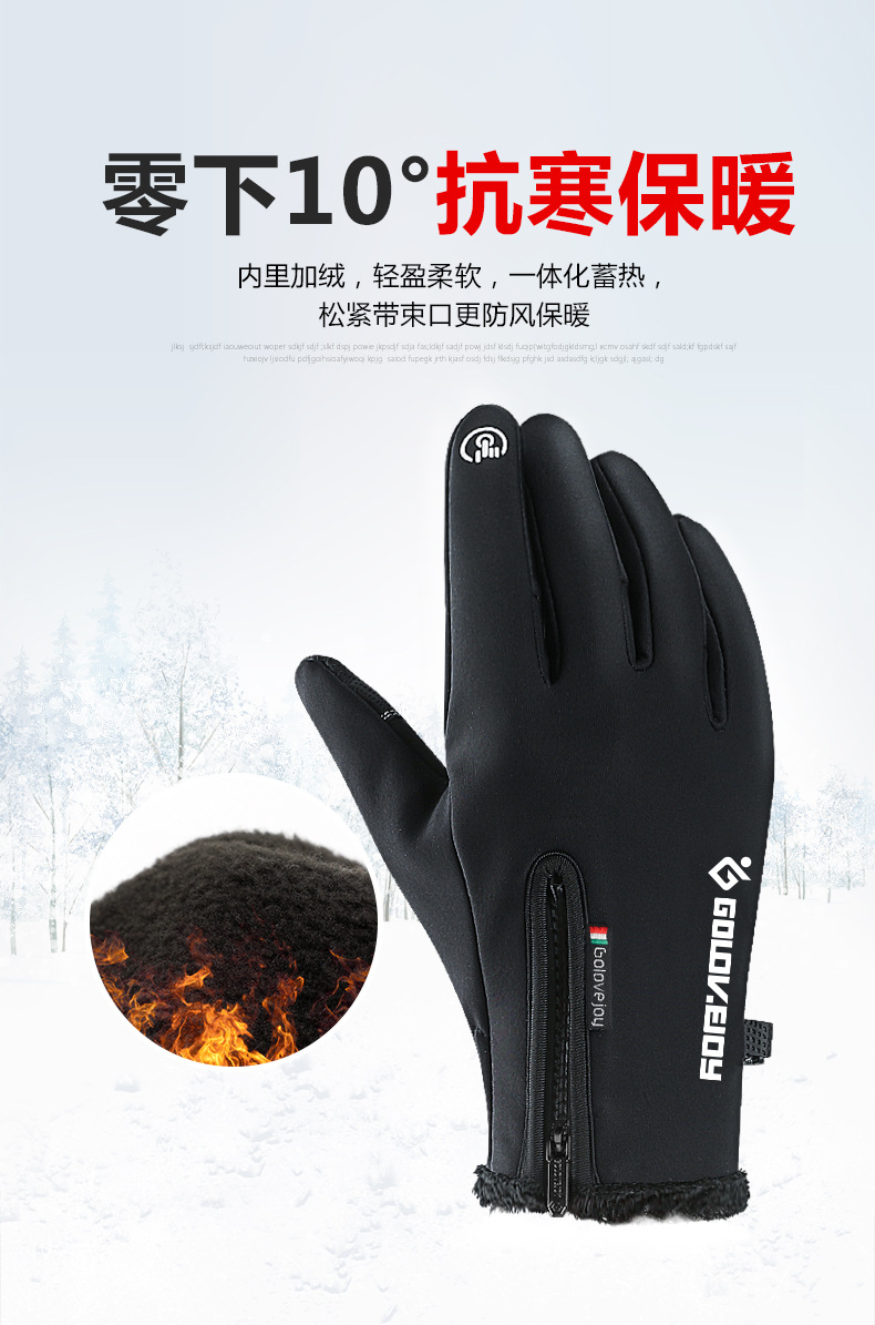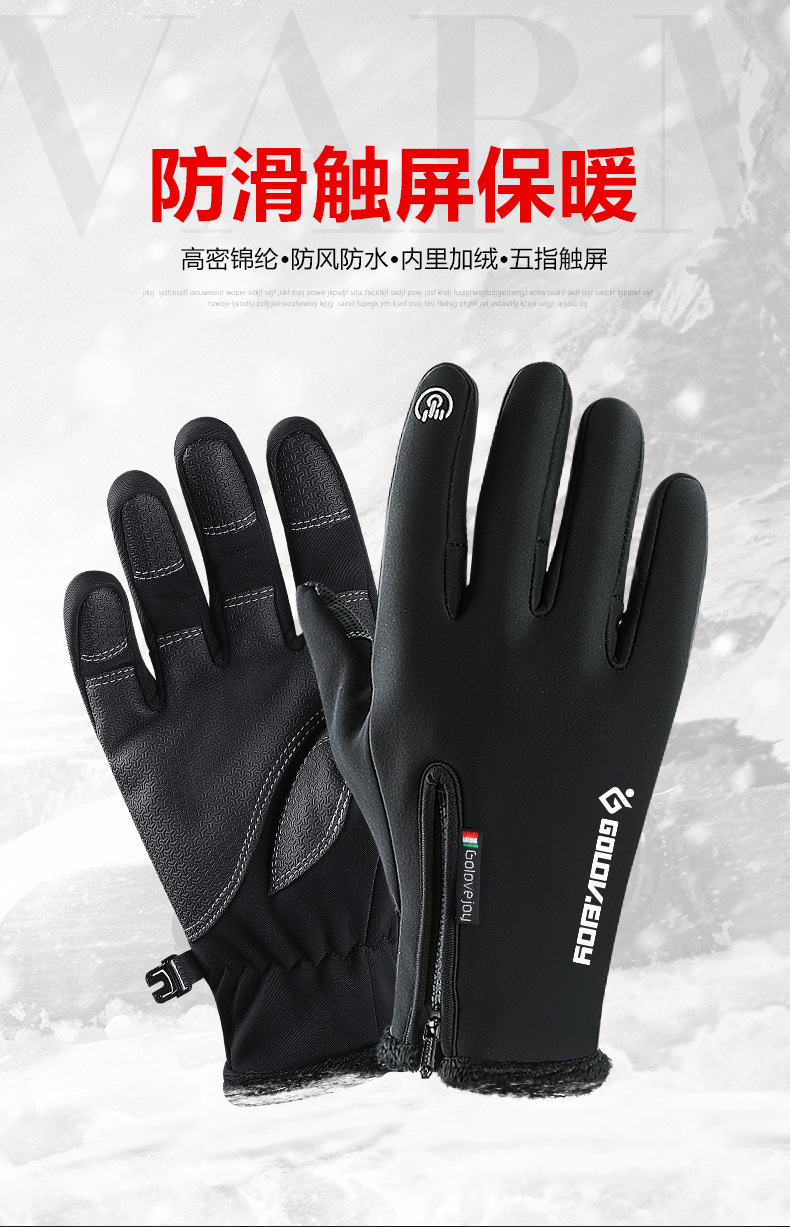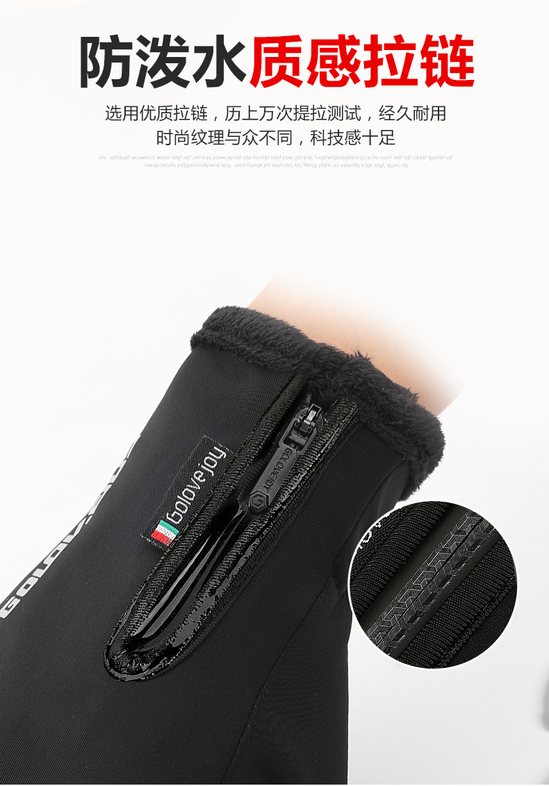 户外防水手套冬季触屏男女防风保暖骑行拉链运动加绒登山滑 雪