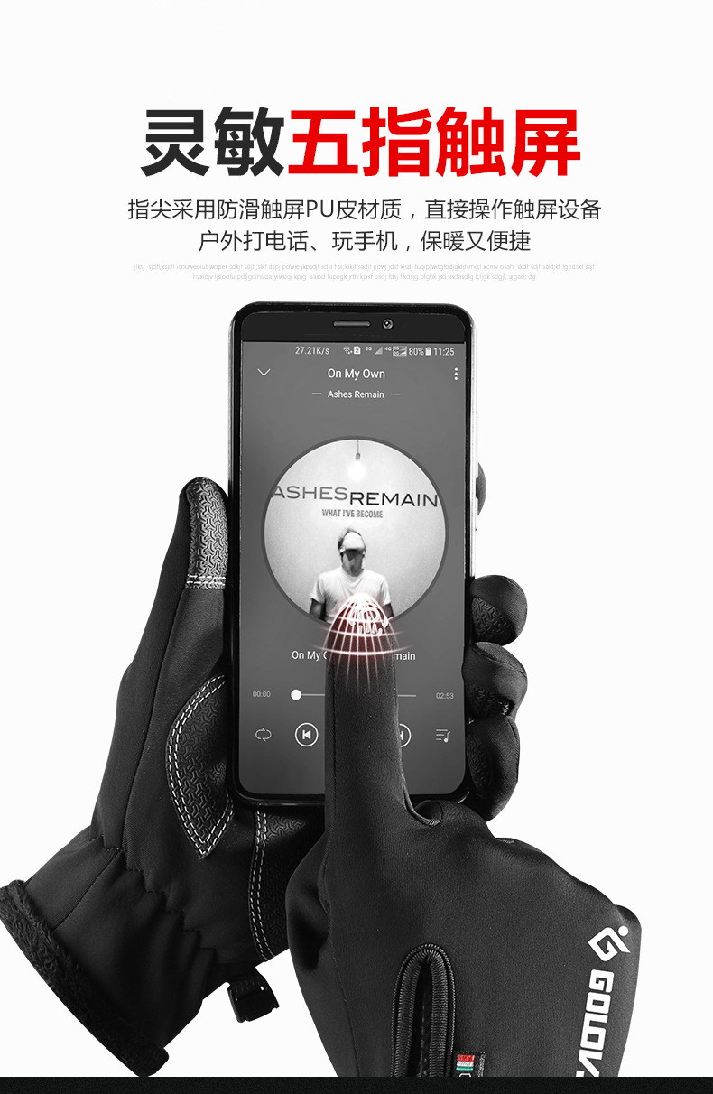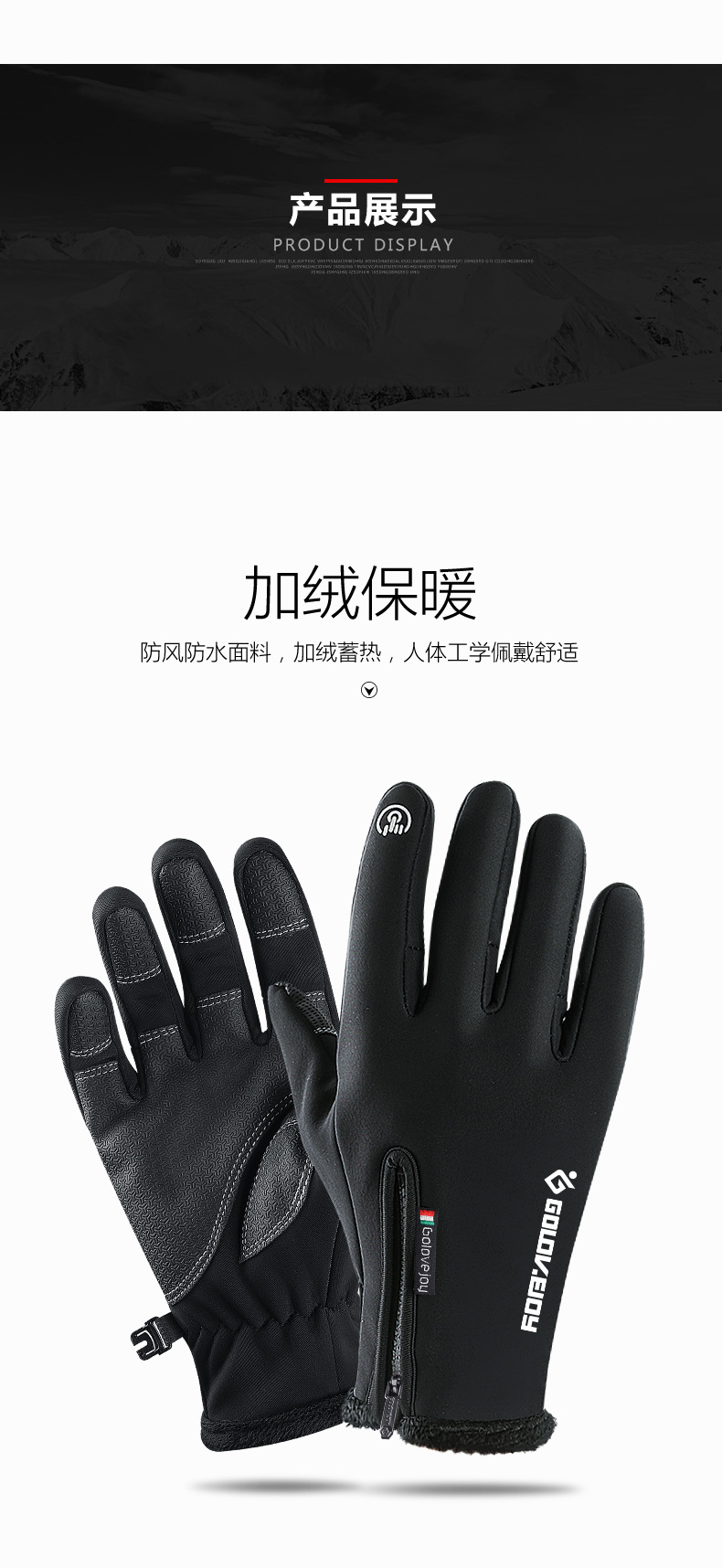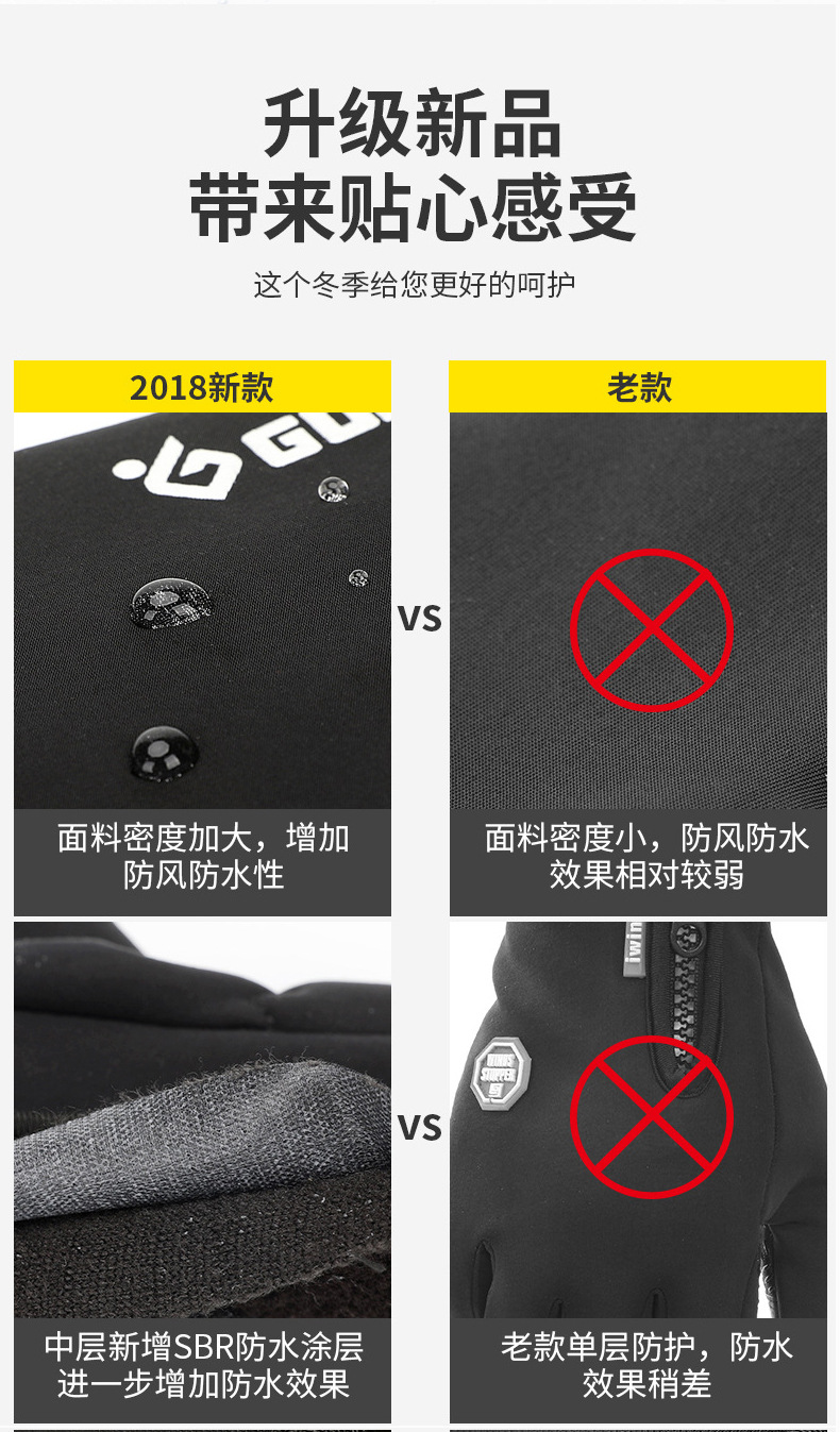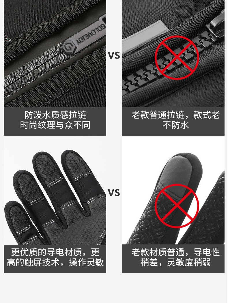 户外防水手套冬季触屏男女防风保暖骑行拉链运动加绒登山滑 雪
