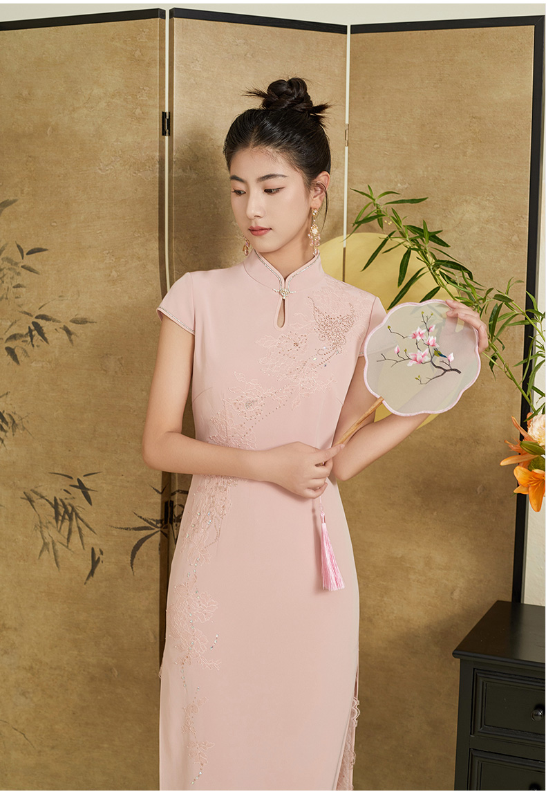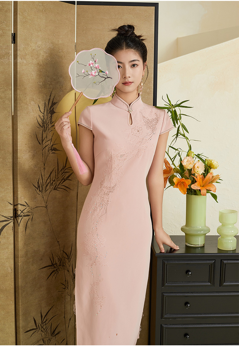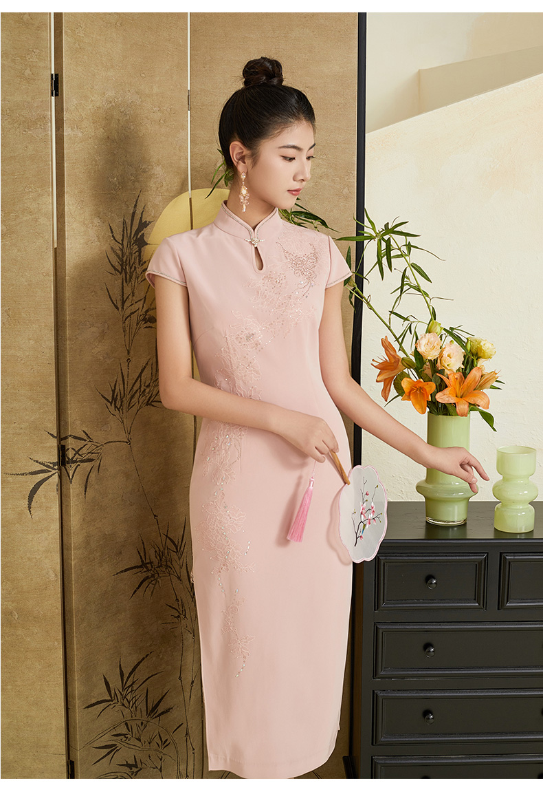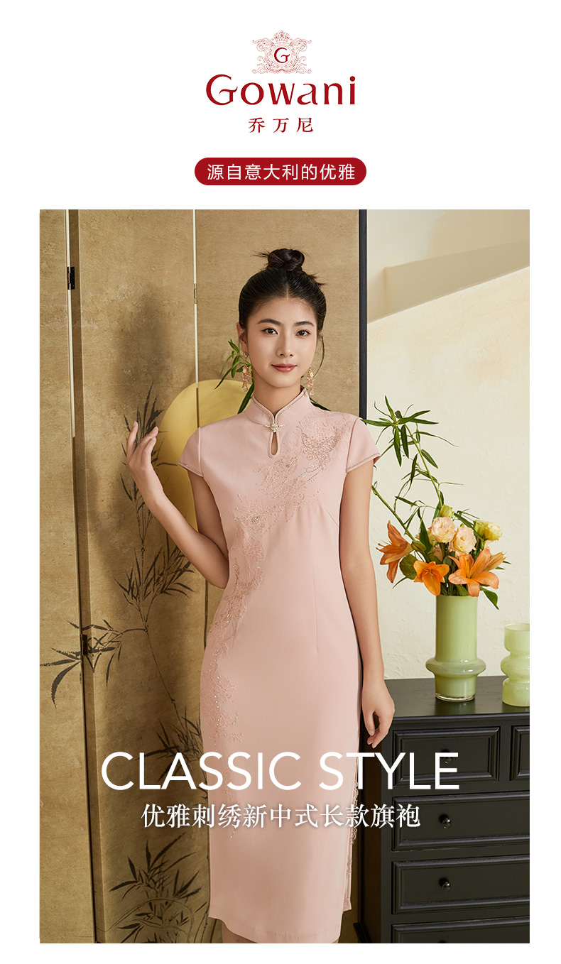 乔万尼国风复古旗袍连衣裙重工刺绣钉珠ET3E608