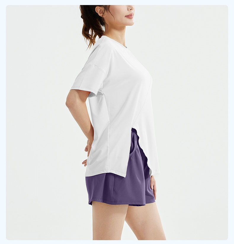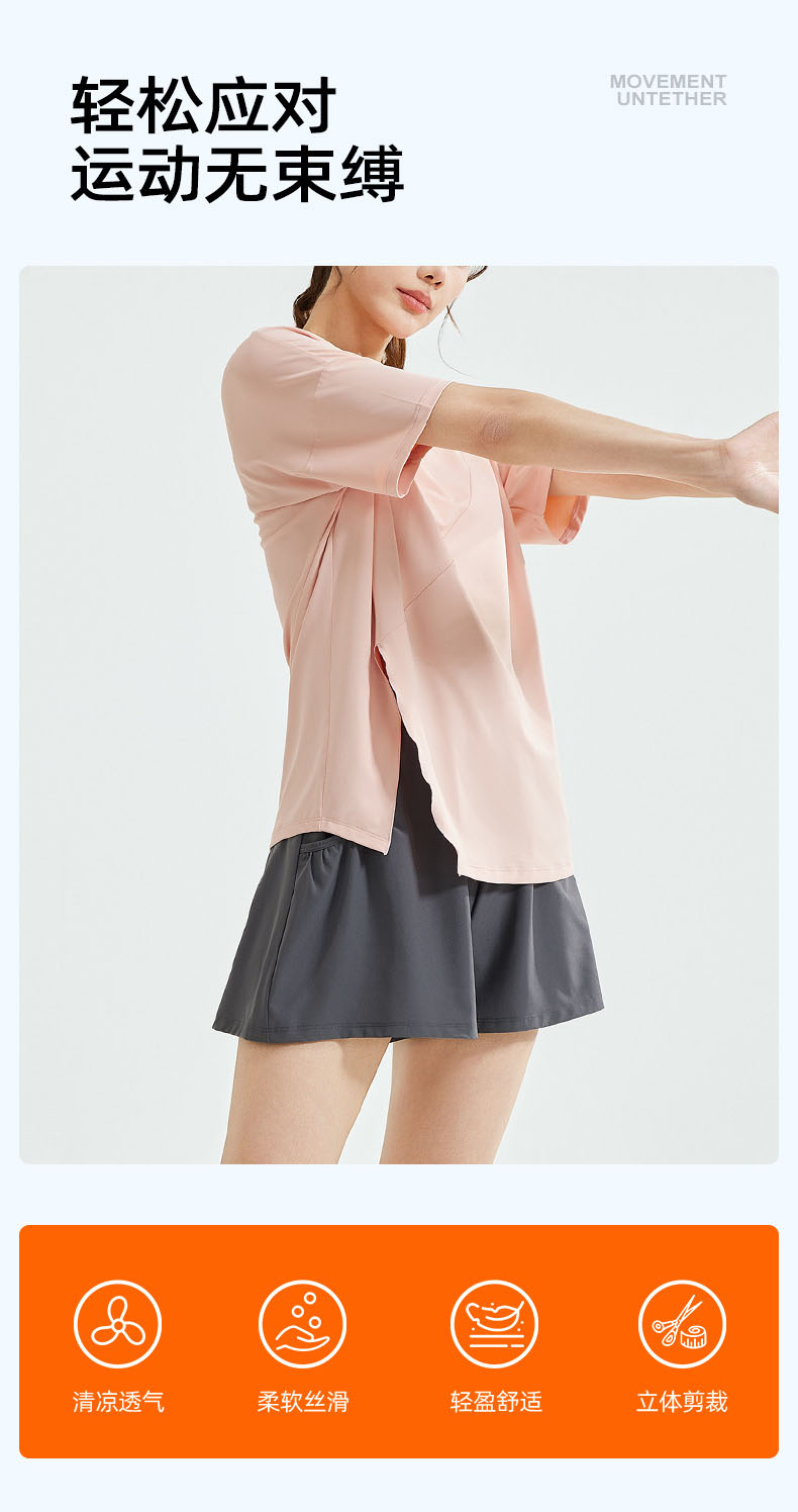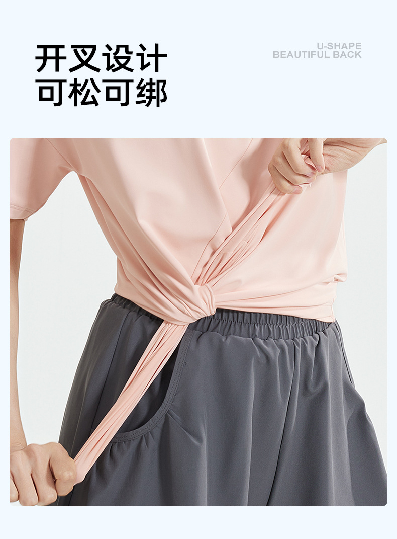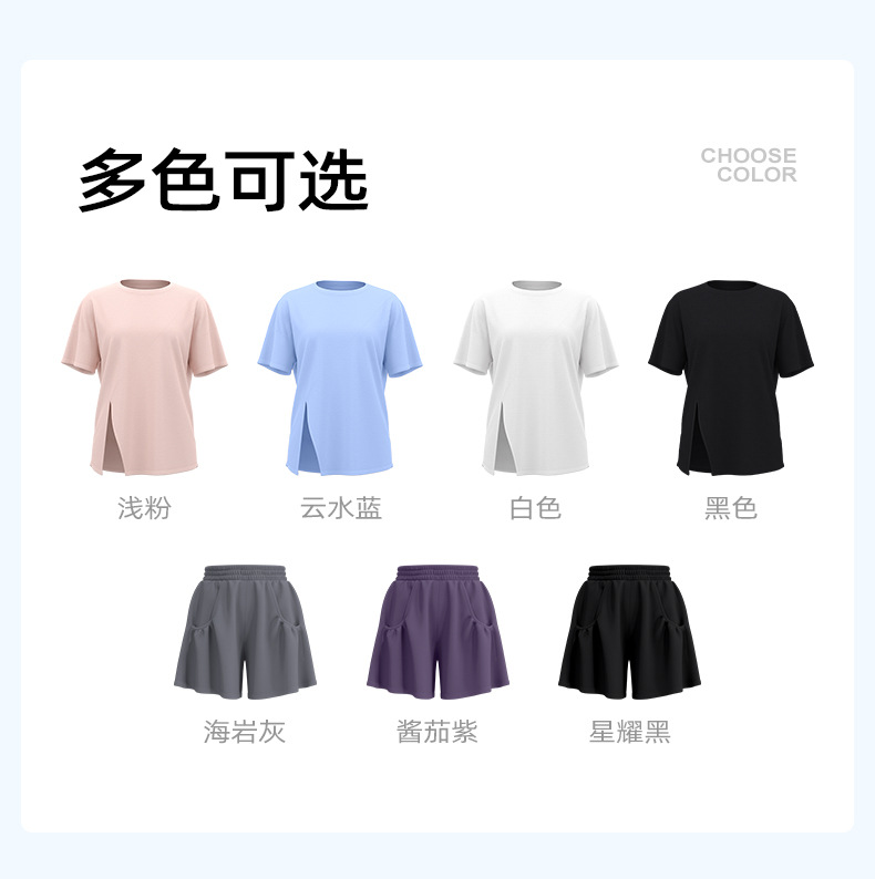 跃牌【瑜堂系列】春秋开叉瑜伽套装宽松透气罩衫T恤防走光短裤跑步运动套装JYWD008+JYMA072