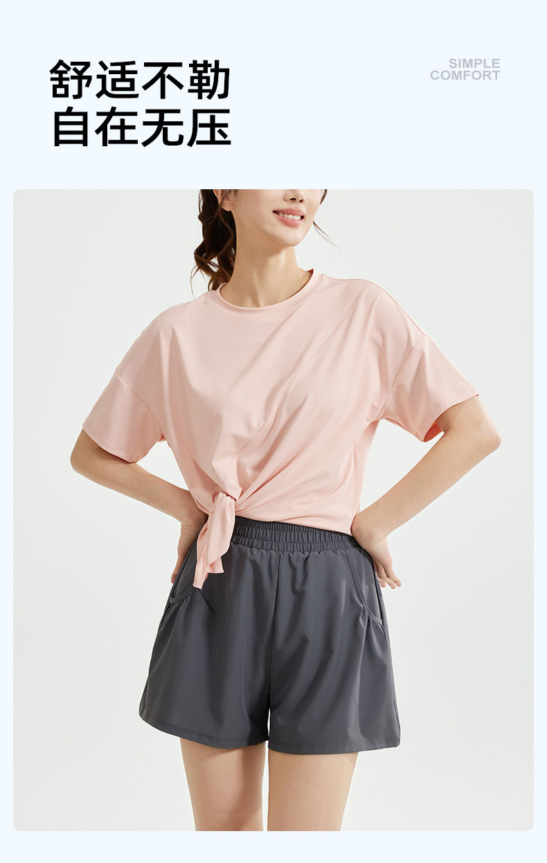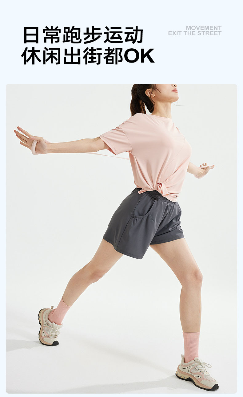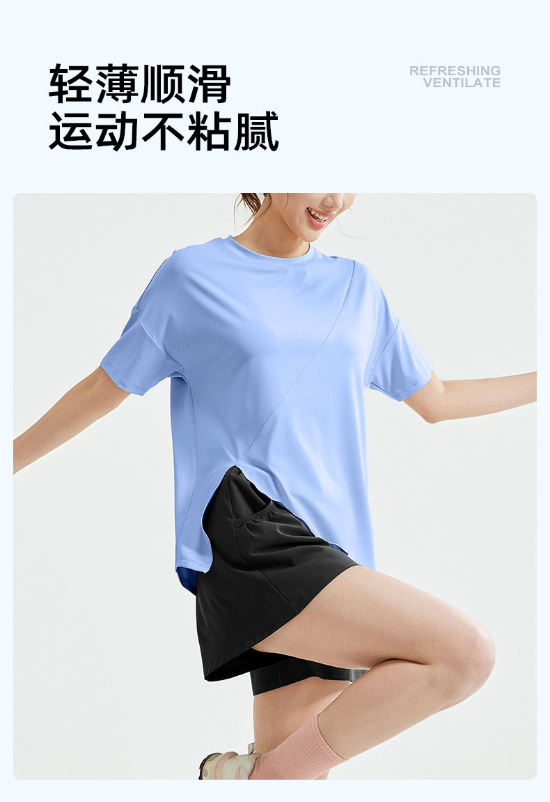 跃牌【瑜堂系列】春秋开叉瑜伽套装宽松透气罩衫T恤防走光短裤跑步运动套装JYWD008+JYMA072