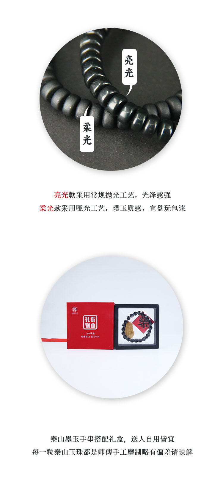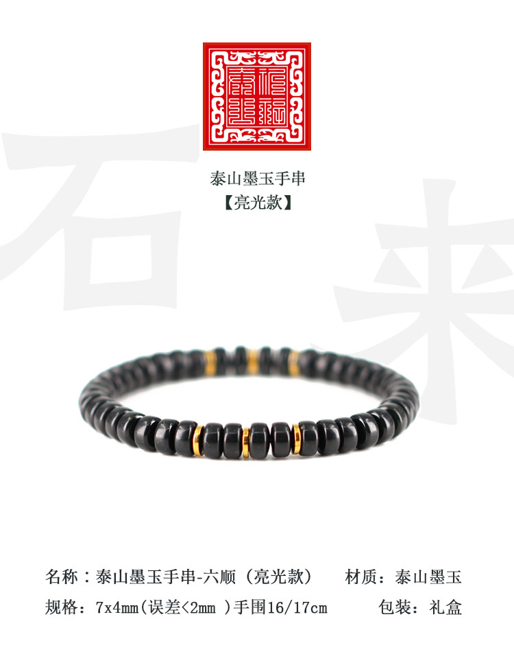 遇石记泰山玉药片文玩手串六顺款泰山墨玉手链男女款