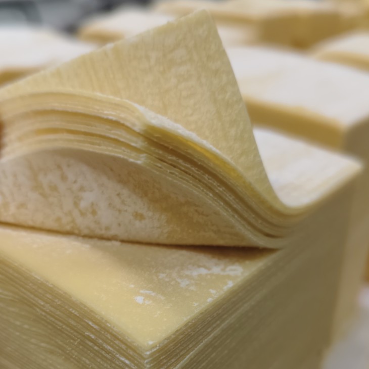 不要以为广东人只爱吃米饭,地道的云吞也是大多数广东人的治愈系食物(Comfort Food)。如何最大化还原传统云吞美味?其实云吞皮的作用相当重要。云吞皮使用全生态标准食材:生态面粉+生态鸭蛋+一点食用盐(生态湖盐)+少许食用碱制作,有机玉米淀粉防粘,有机大豆油也是为了防止面团过黏,添加少量防粘。