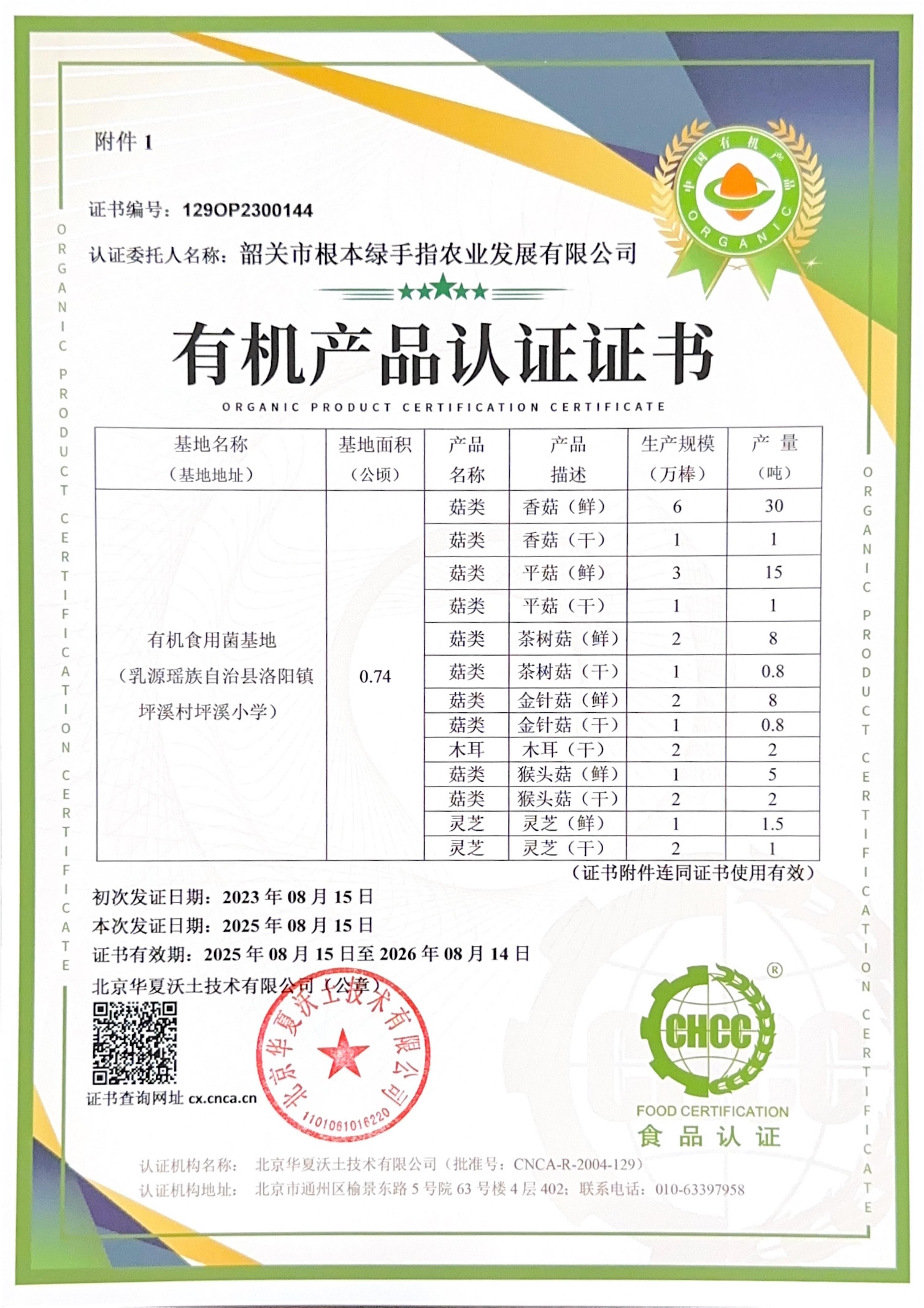 国标的有机认证会对整个基地进行考察检测,认证是针对单品的,蘑菇基地只选了香菇、茶树菇、平菇等作为代表进行认证,但基地内的金针菇、猴头菇都按照有机方式进行种植。