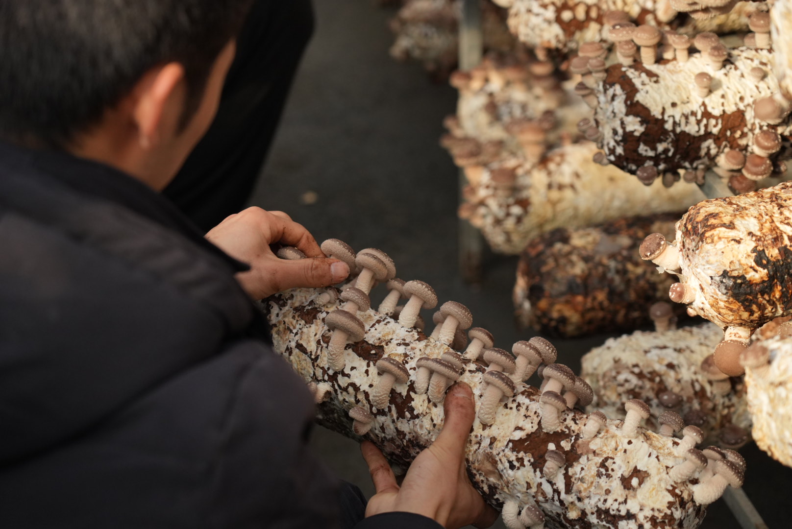 生产方式:自制培养基质和接菌种,使用杂木的木屑,有机麦麸、玉米芯作为培养基质原料,不使用存在风险的玉米和棉籽壳等,生长过程中不使用农药、激素和保鲜剂。采新鲜的香菇去根后,用木屑低温烘干。