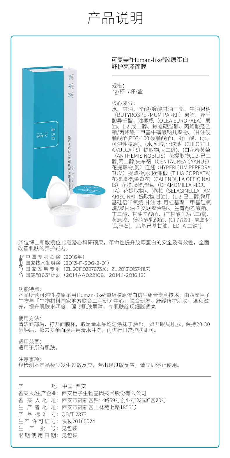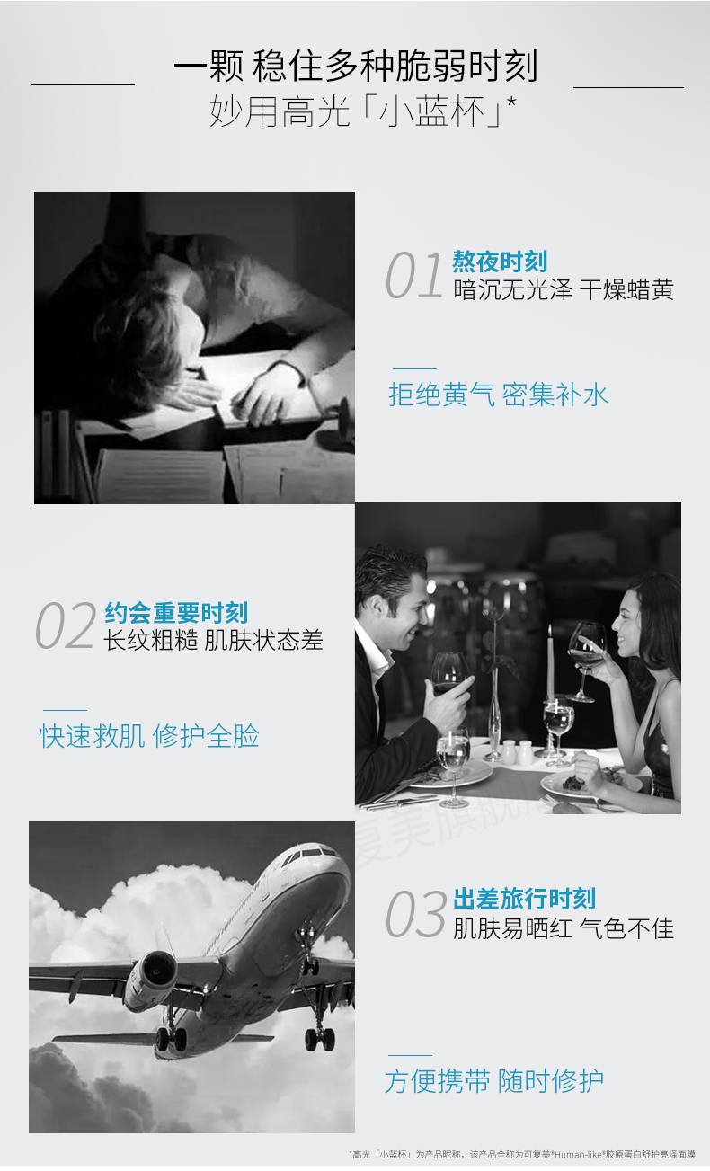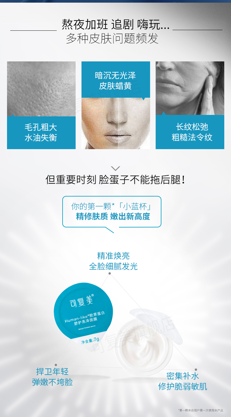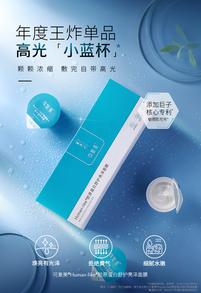 可复美涂抹式修护高光小蓝杯焕亮细腻补水锁水保湿匿龄面膜7杯
