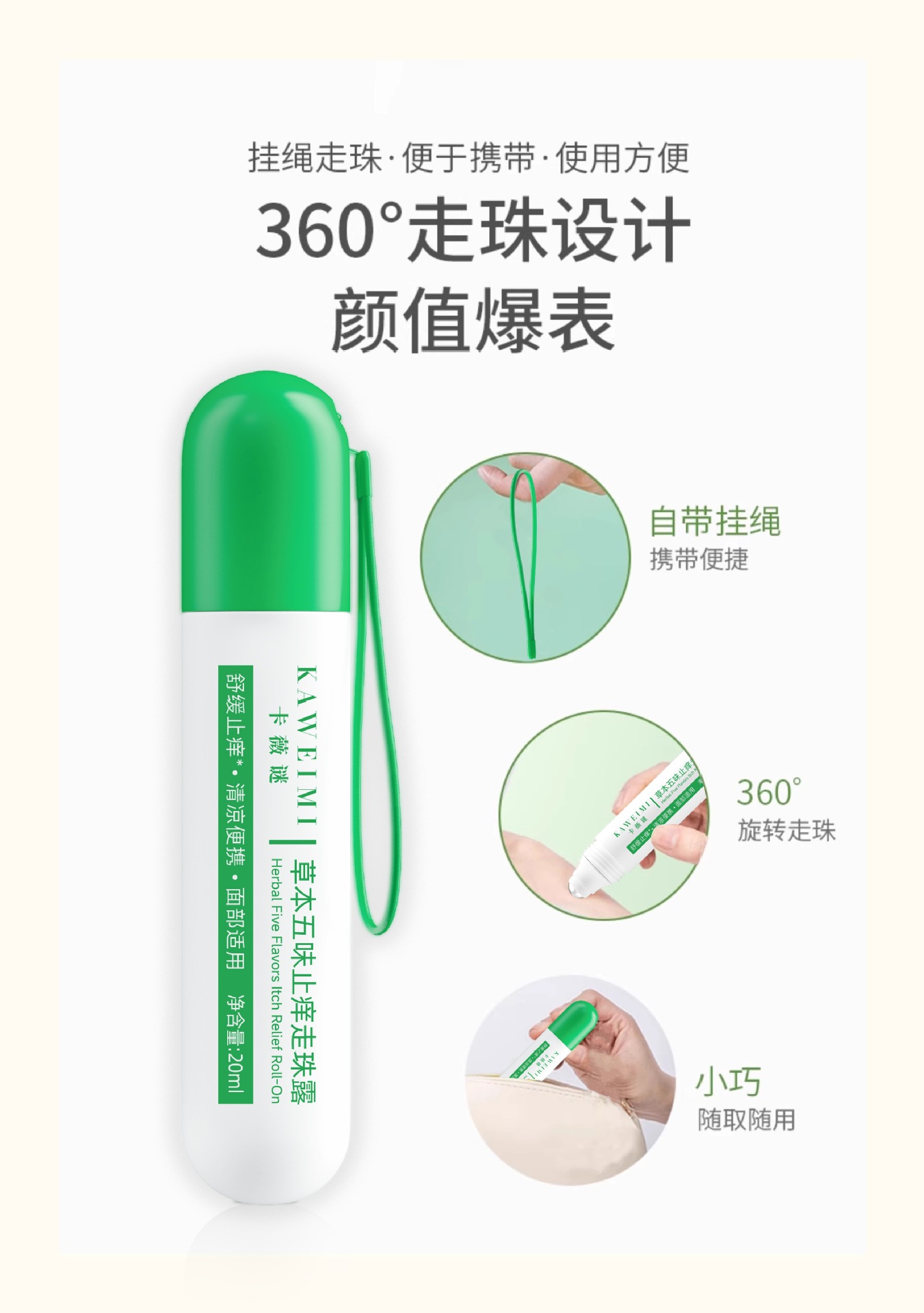 买二送一!【冰凉劲爽,一抹舒缓】五味止痒走珠露 五味消毒饮 夏季户外驱蚊 蚊虫叮咬舒缓棒草本-QQ