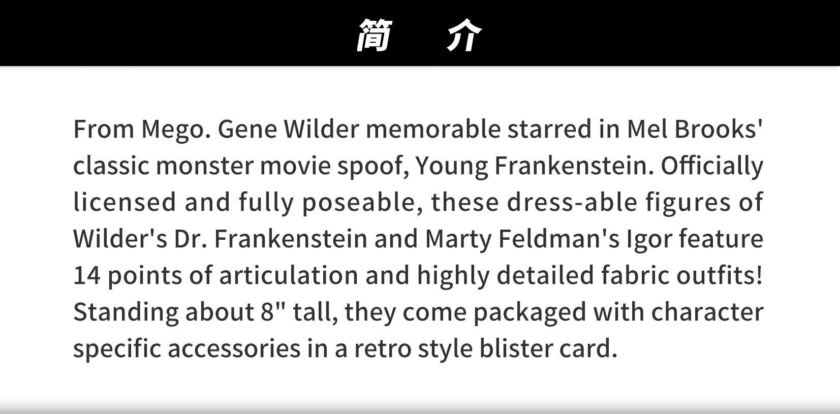 现货 Mego 新科学怪人 Dr Frankenstein 8英寸 挂卡 可动 潮流玩具 摆件