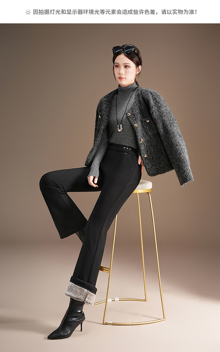 「自」全新升级【铂金会员183/天猫249/差价66】(20741)洛诗琳时尚高腰加绒喇叭裤2025冬季新款气质修身休闲微喇裤