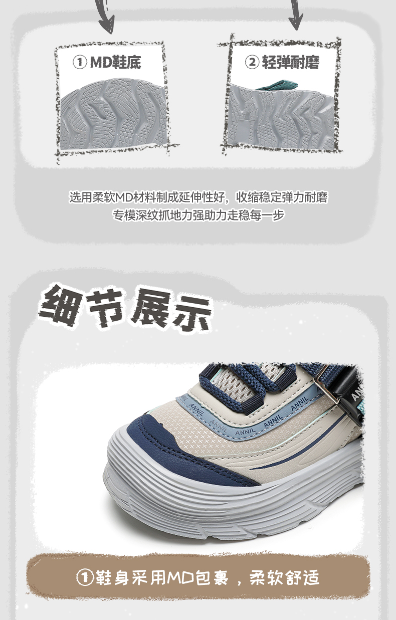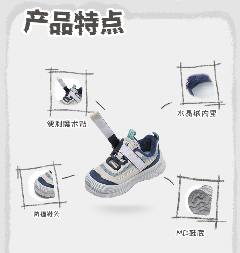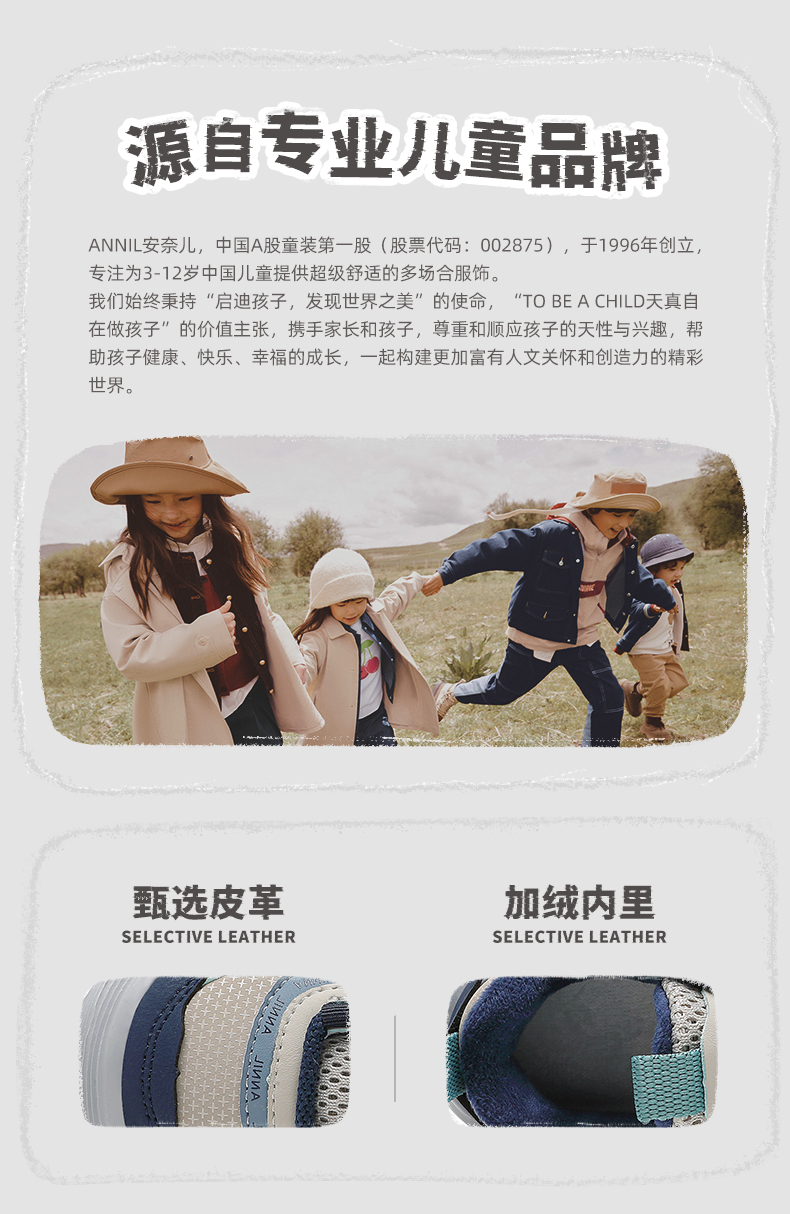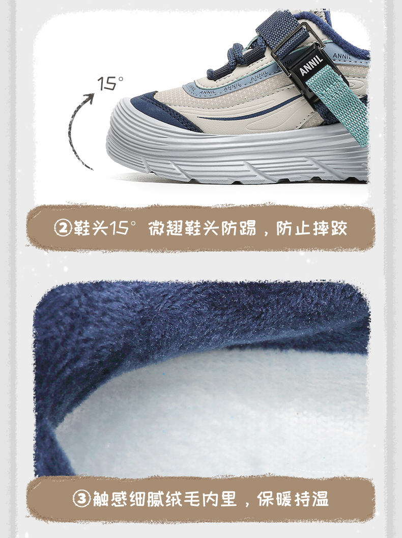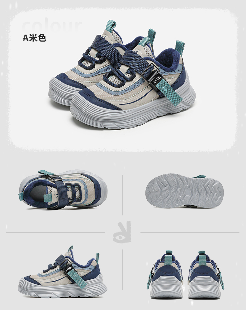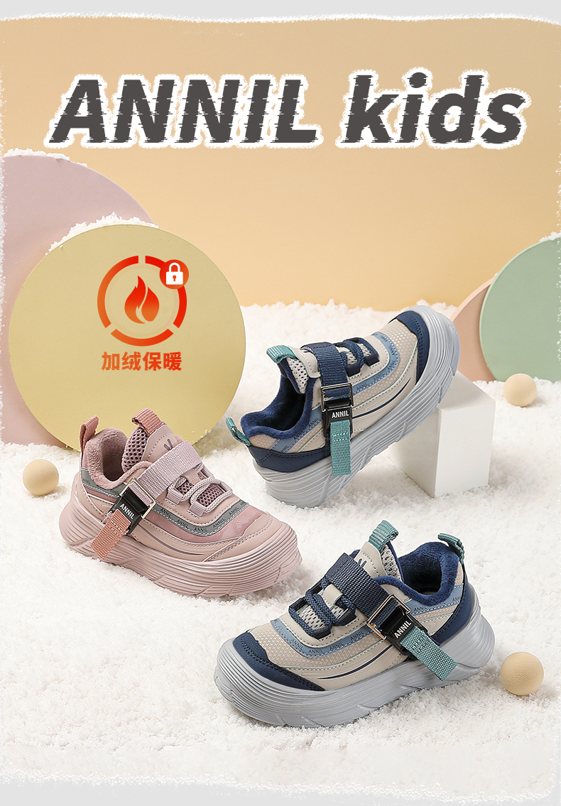 【加绒】ANNIL/安奈儿2024新款冬季加绒儿童休闲保暖运动棉鞋男女童跑步鞋HM4405010