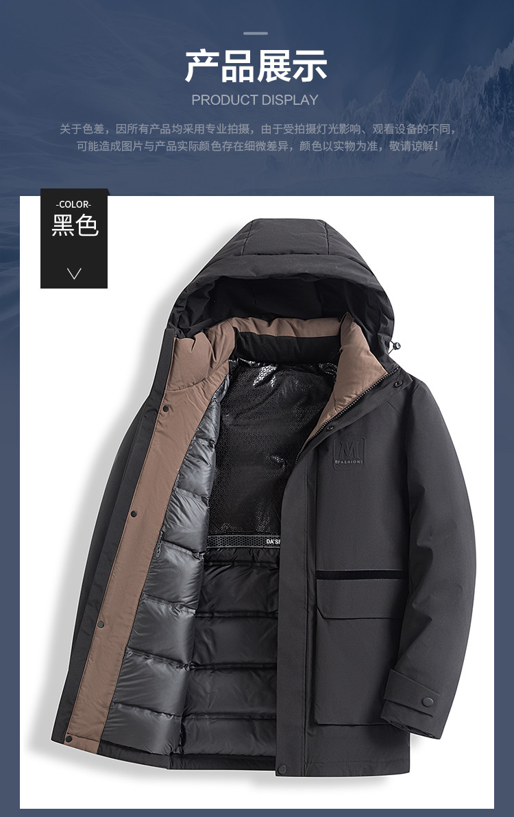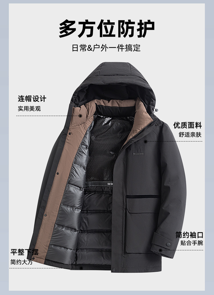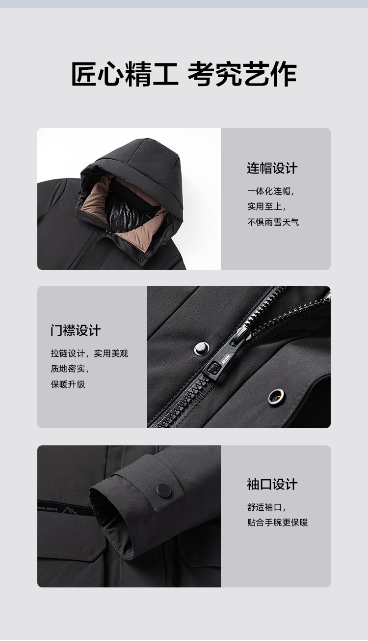 【90白鹅绒】罗蒙冬季男士加厚连帽羽绒服保暖内胆时尚潮男百搭休闲羽绒外套