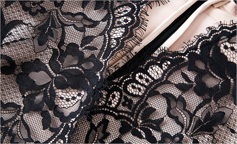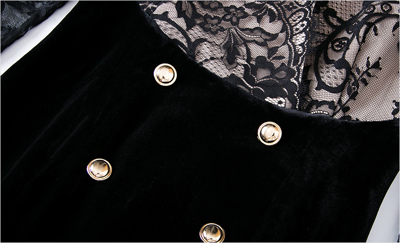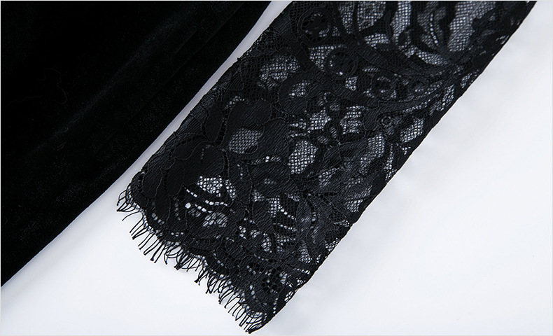FMY-28575新款时尚名媛气质修身丝绒蕾丝拼接包臀连衣裙