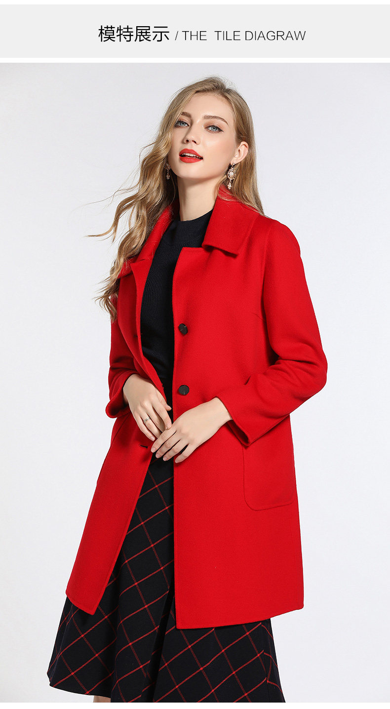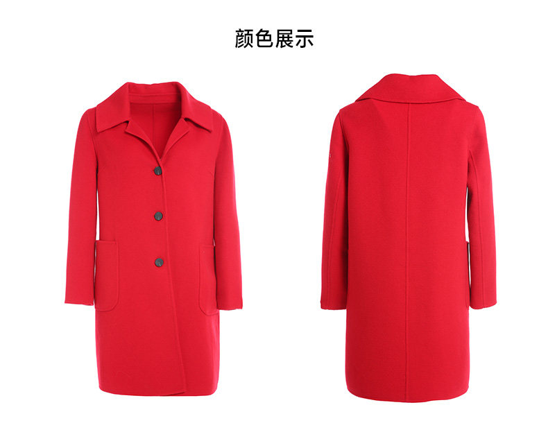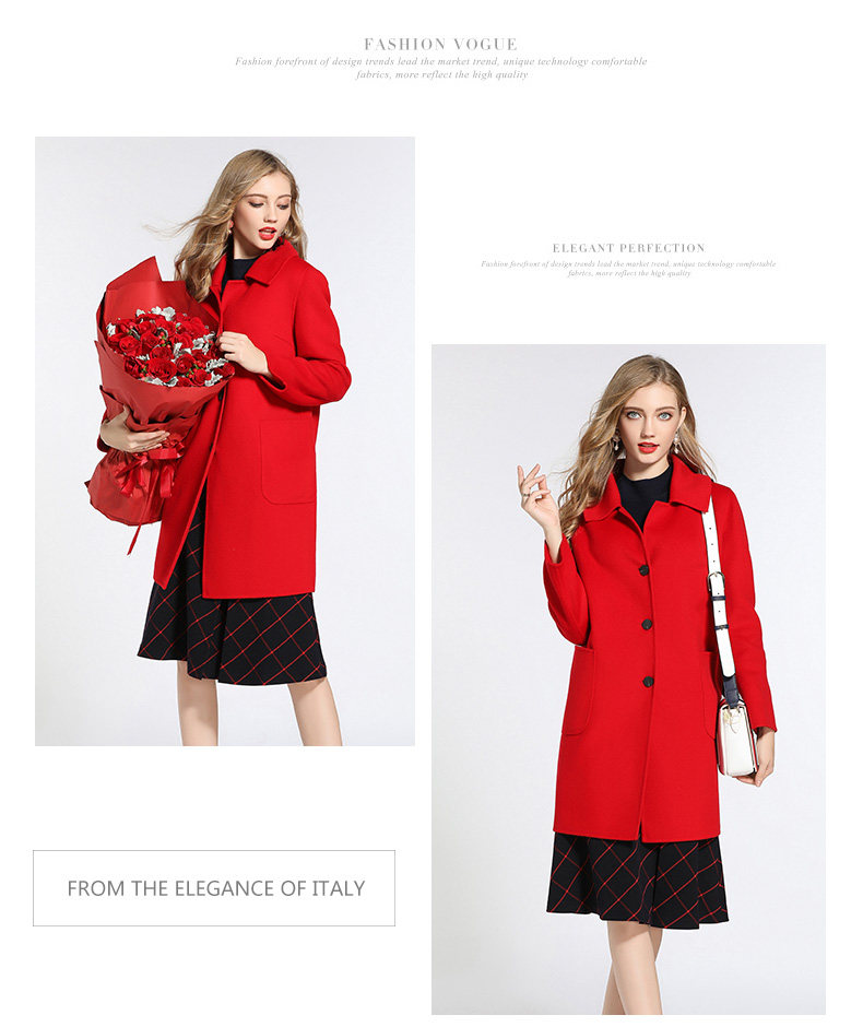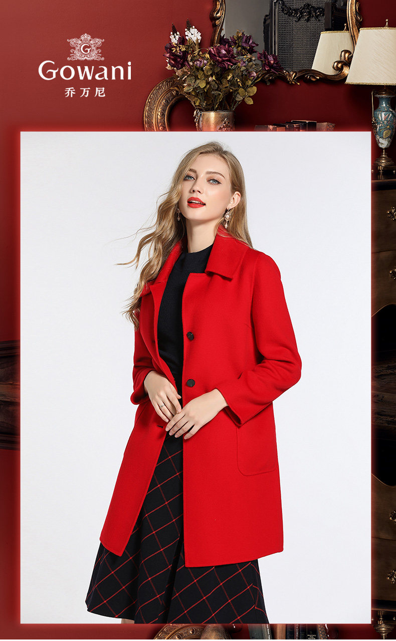 【羊绒】乔万尼双面羊绒大衣女新款红色直筒气质羊毛呢子外套中长款EB4A032