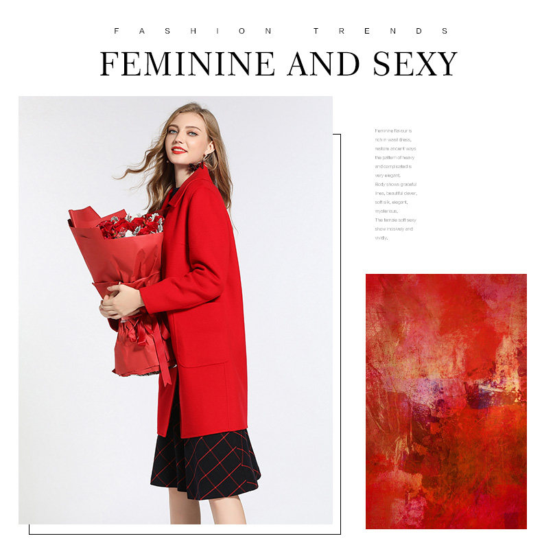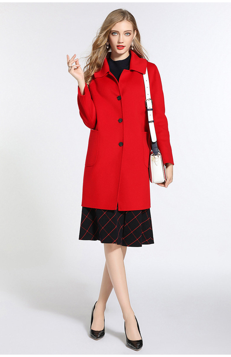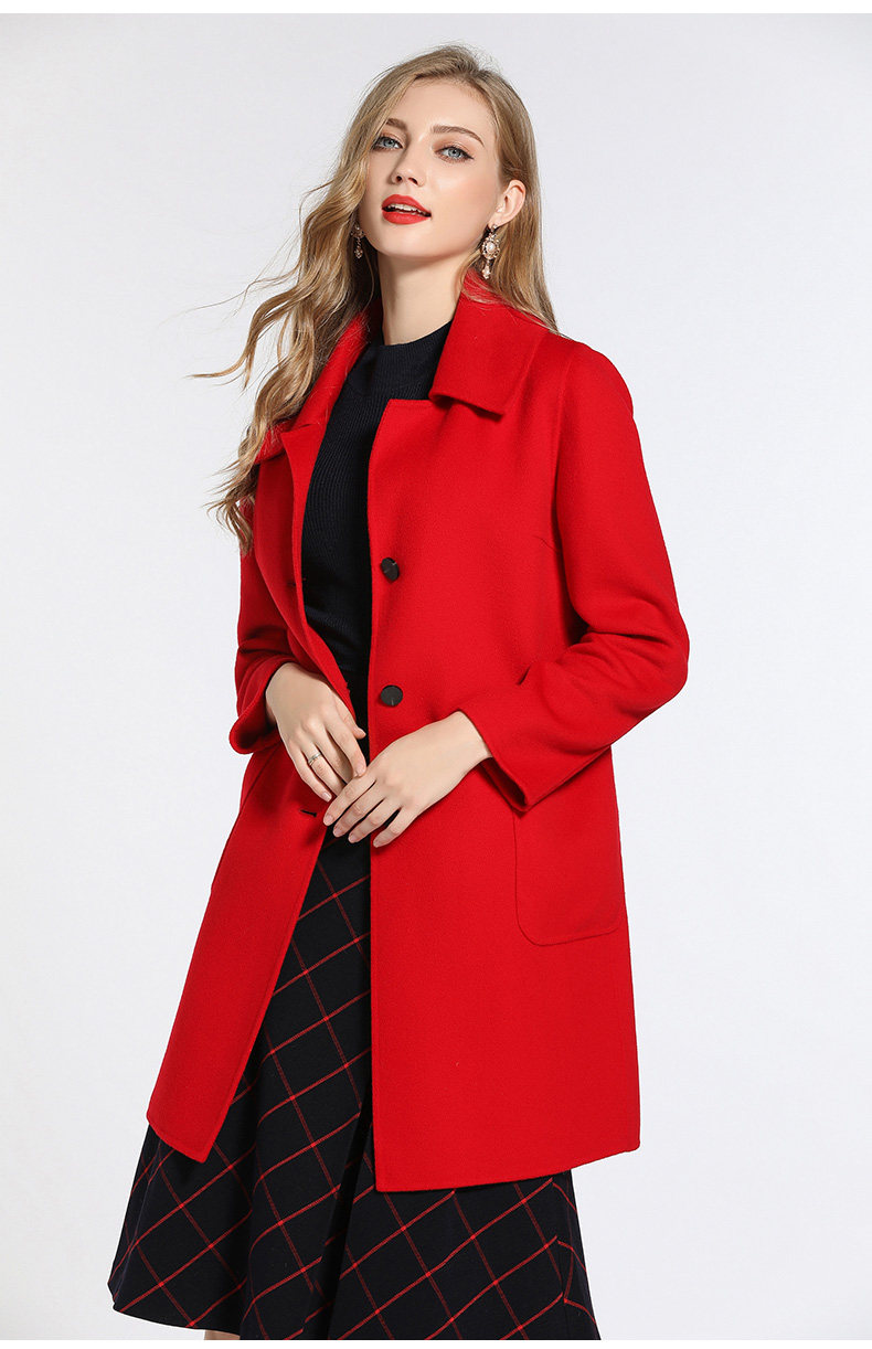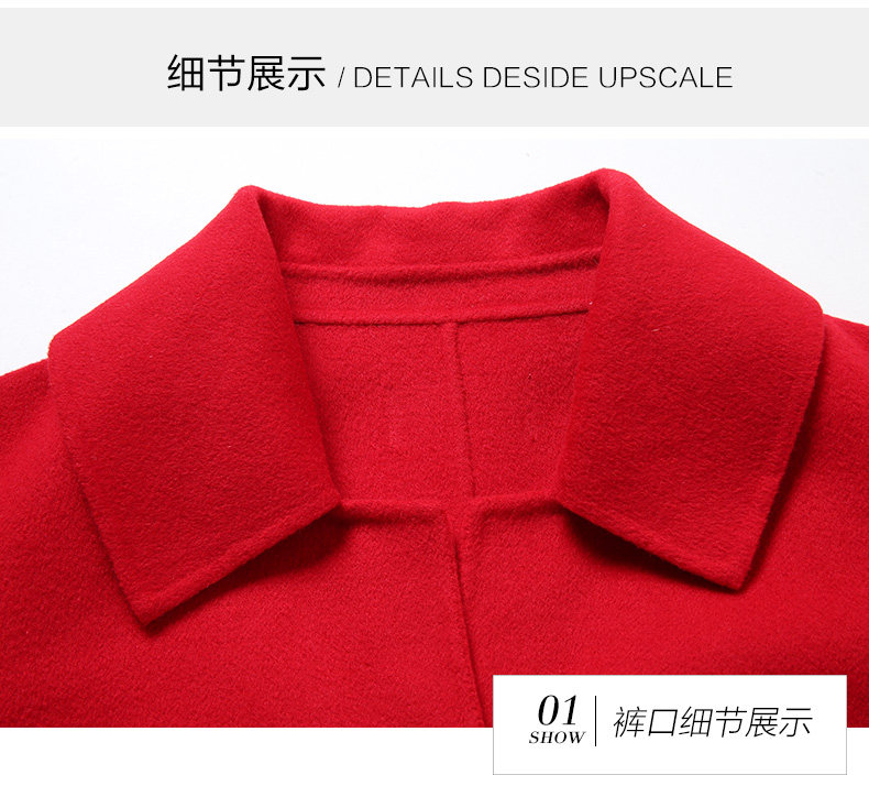 【羊绒】乔万尼双面羊绒大衣女新款红色直筒气质羊毛呢子外套中长款EB4A032