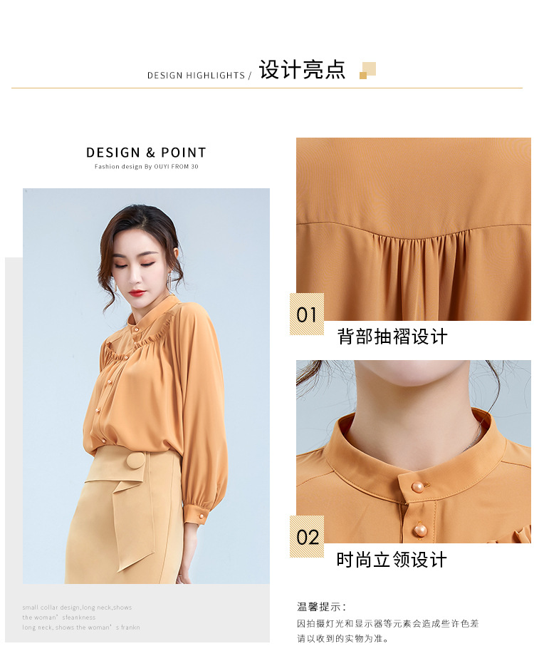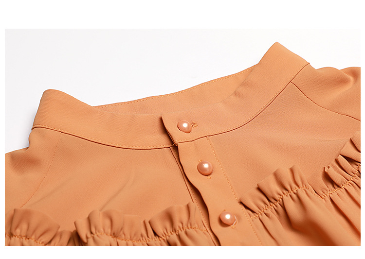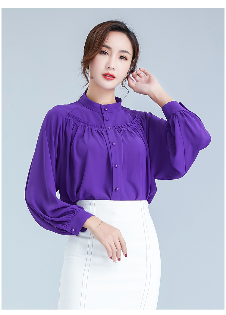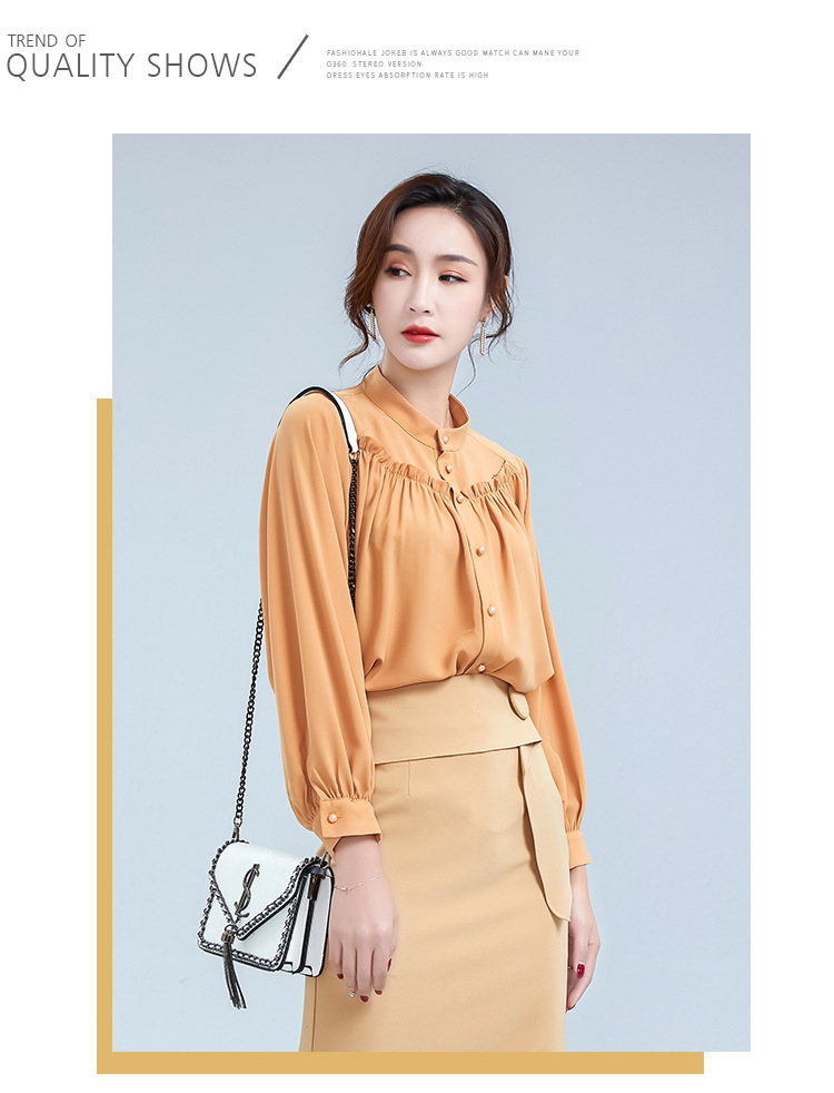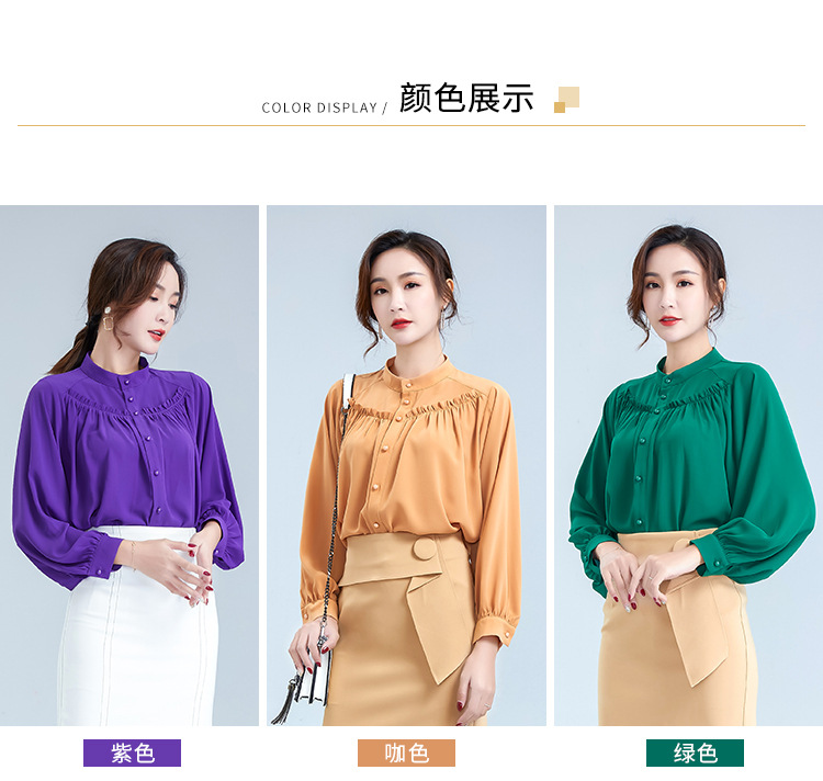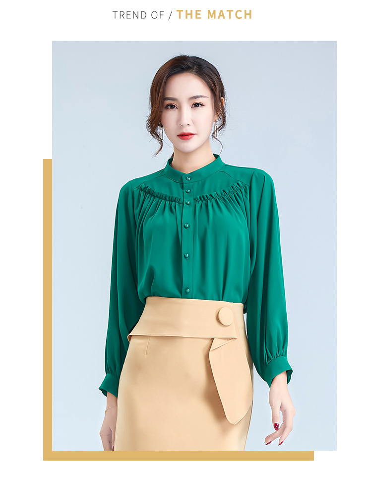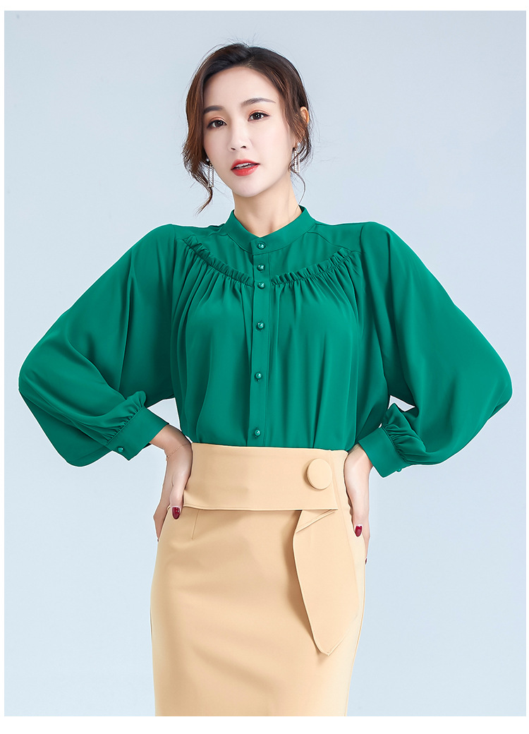 OY-20-028新款单排扣立领灯笼袖雪纺衫