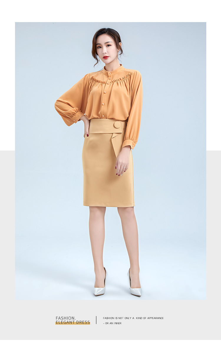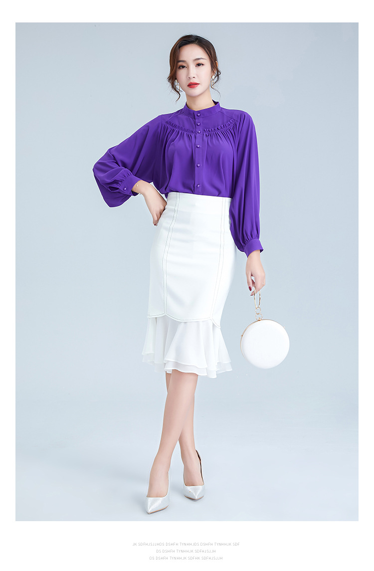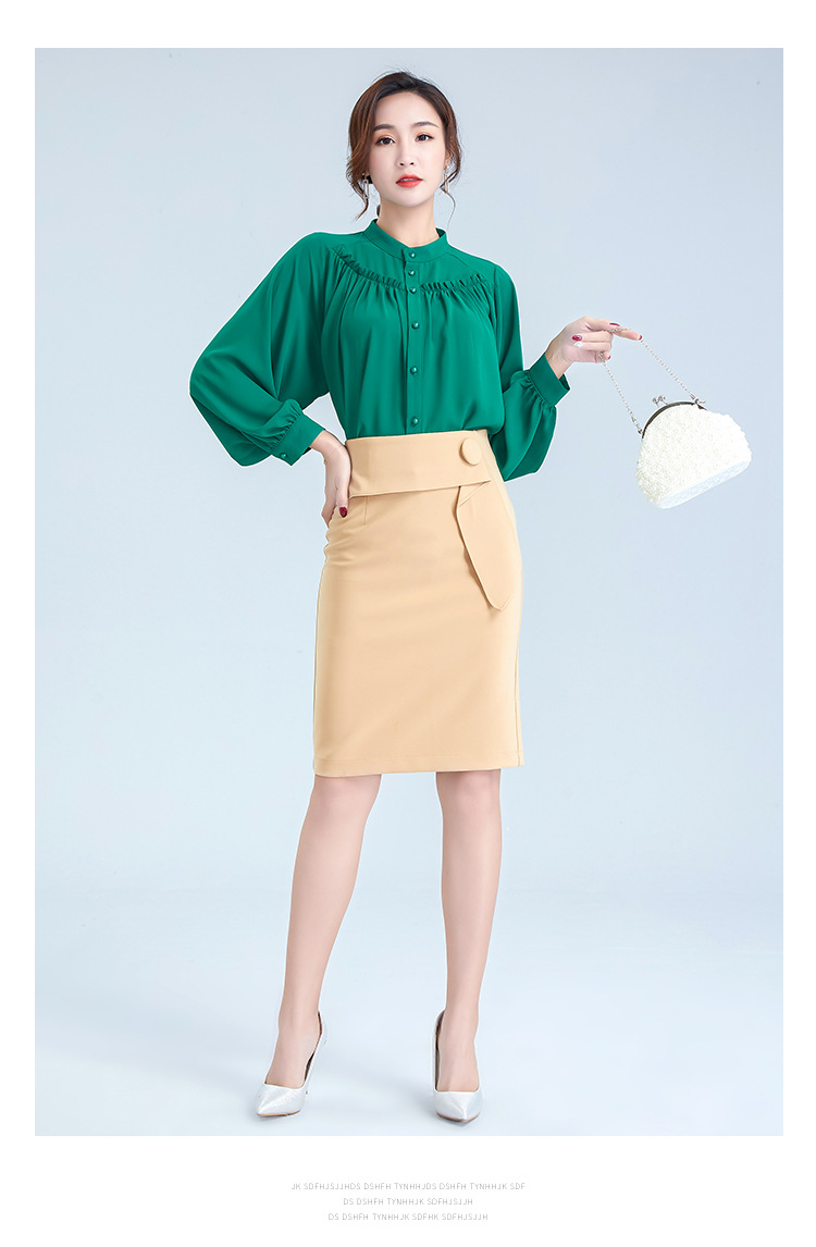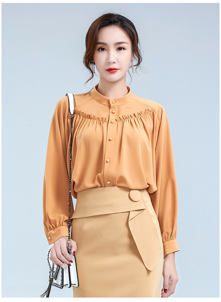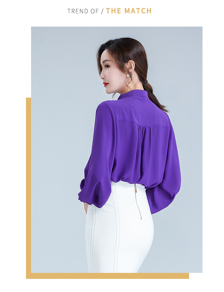 OY-20-028新款单排扣立领灯笼袖雪纺衫