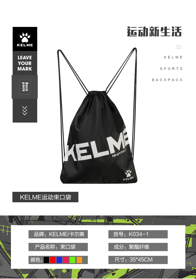 卡尔美 超轻束口袋抽绳双肩背包旅行背包收纳袋健身包运动包