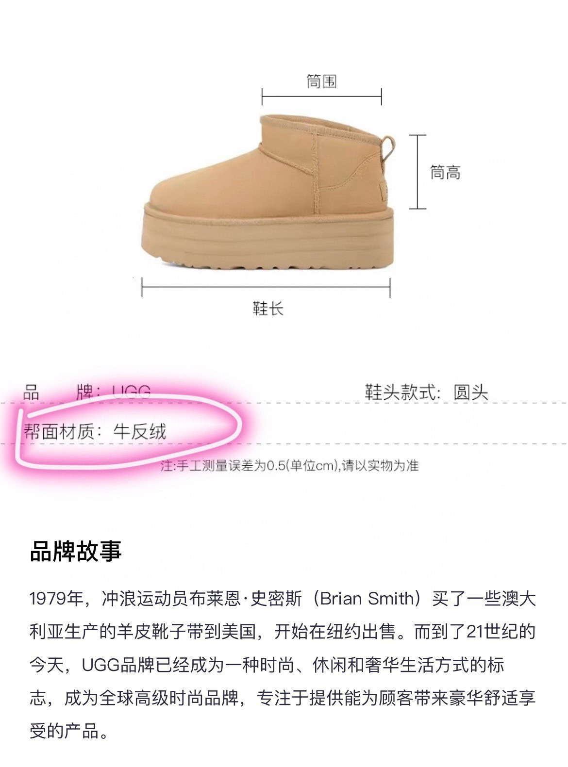 五公分的是牛反绒➕编织羊毛!真羊毛!!和官方没区别,都是18mm以上的长度,非常厚非常密实,这种复合的鞋面市面上有做的但是品质完全不是一回事儿 甚至大底也是天差地别