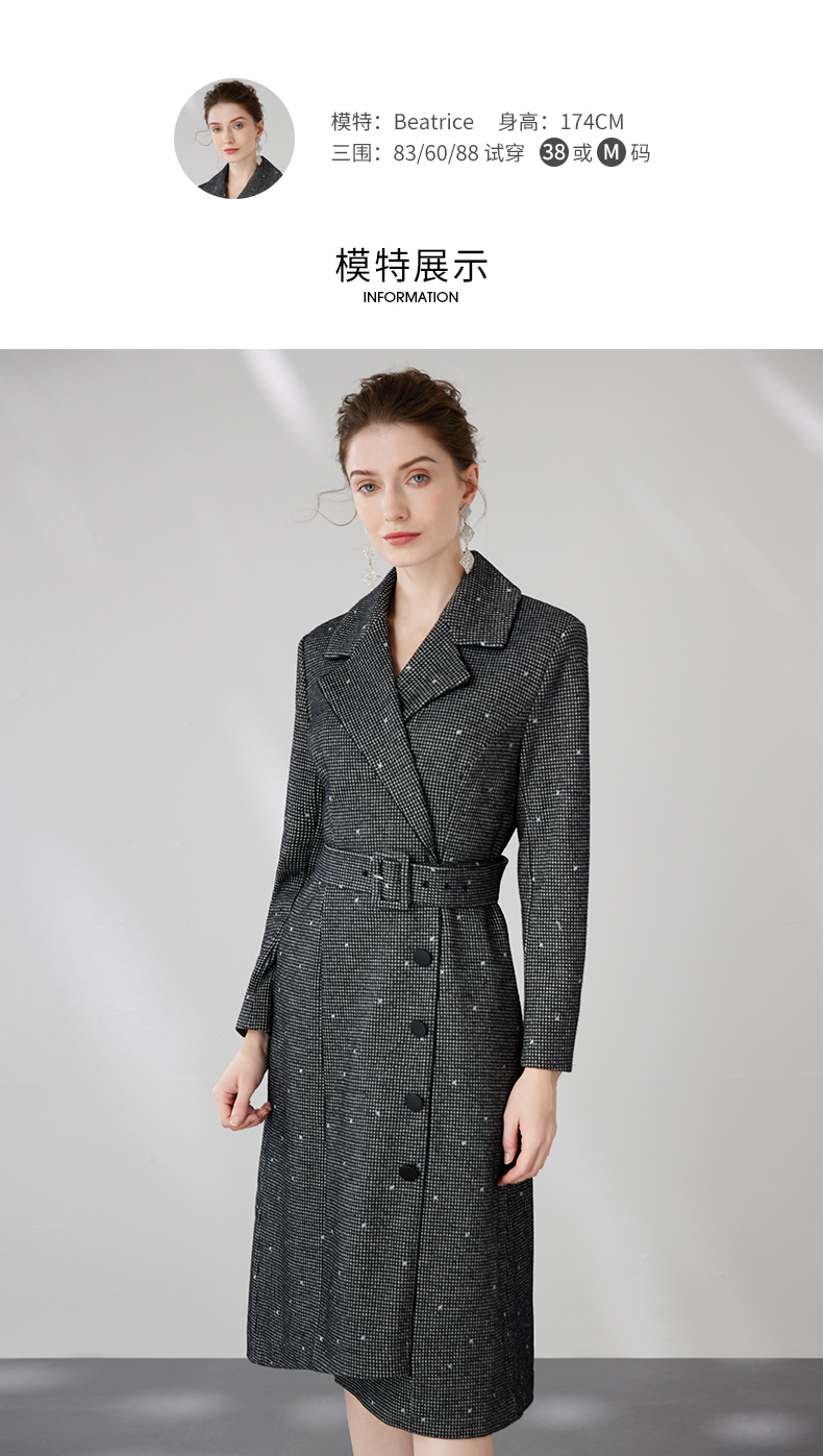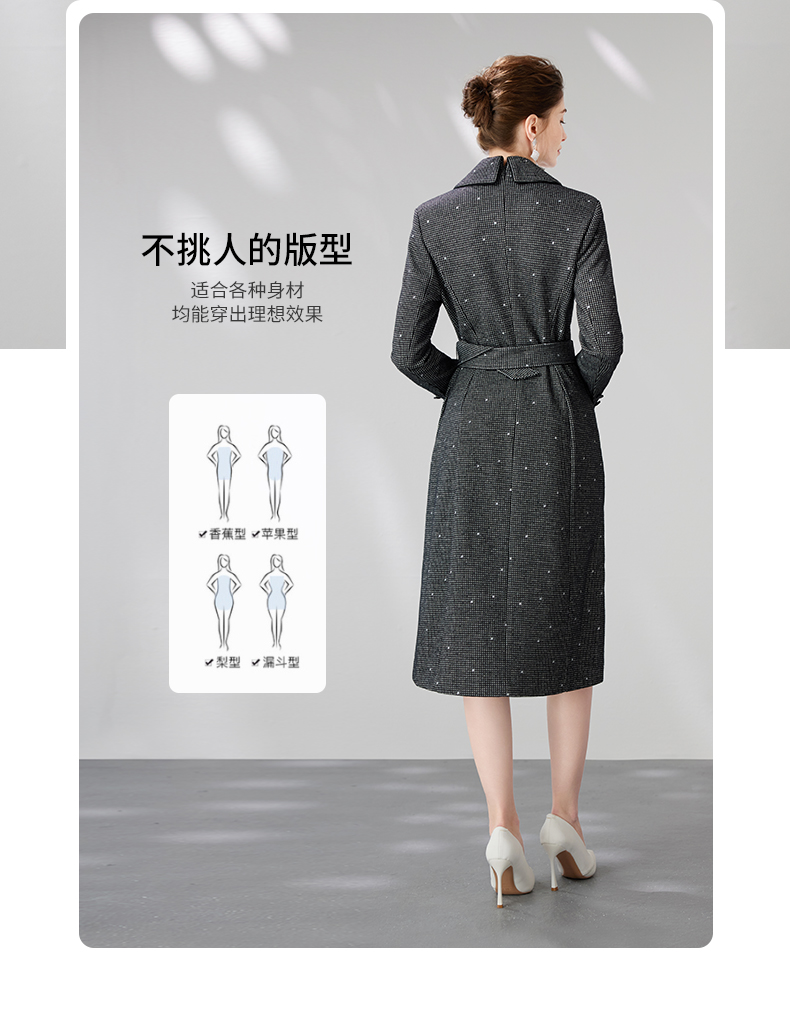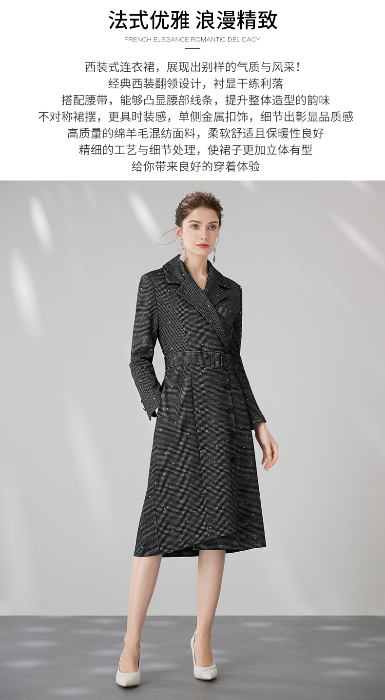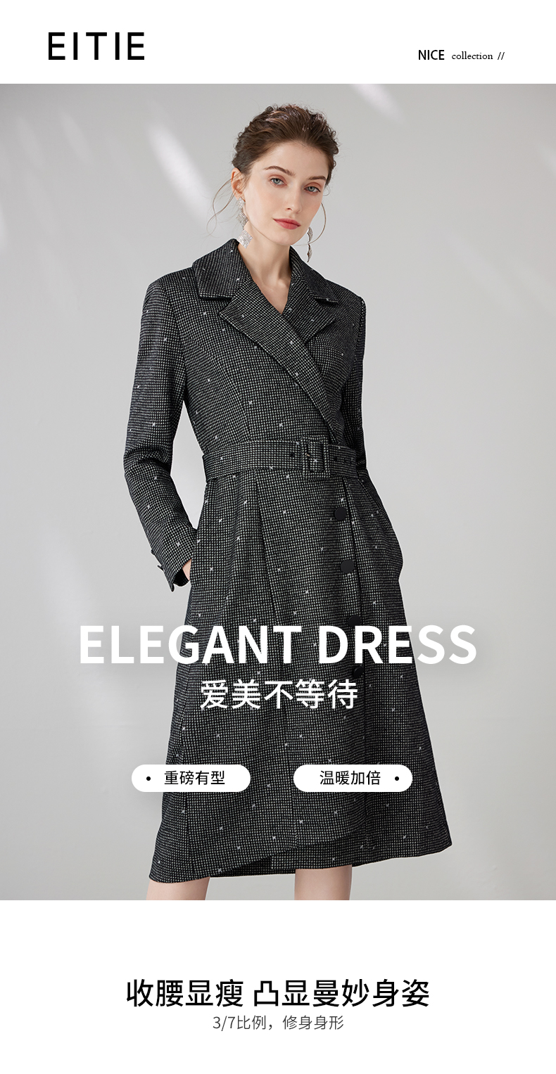 EITIE爱特爱冬季新款时尚洋气复古显瘦收腰系带连衣裙女裙6807525