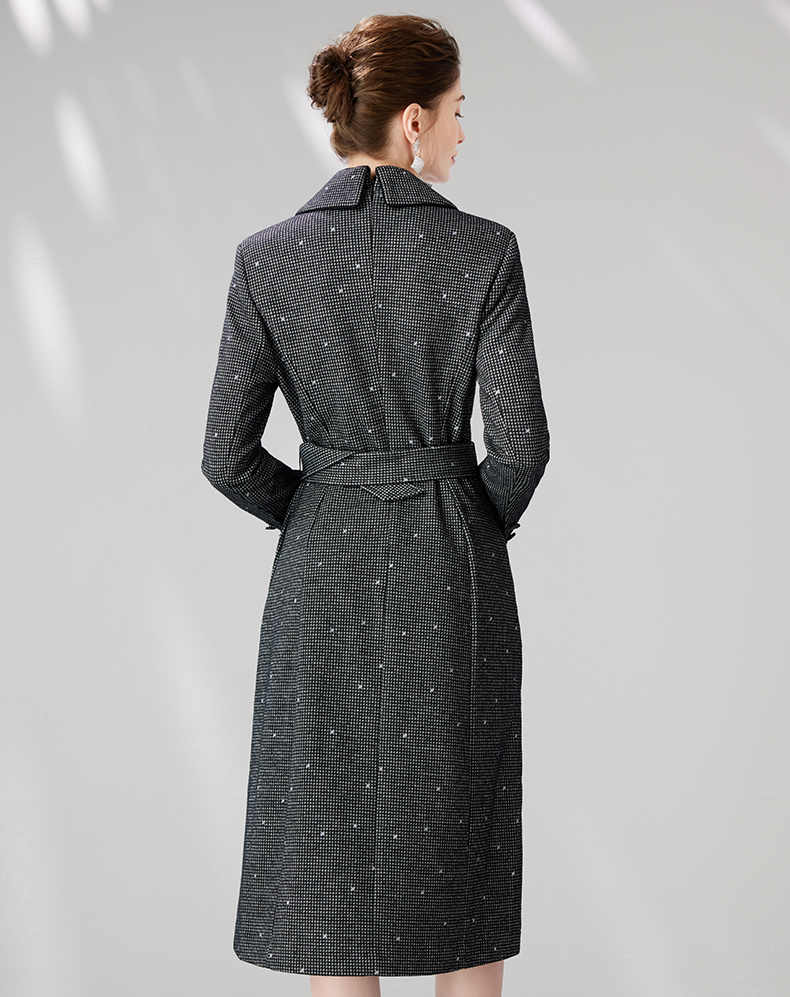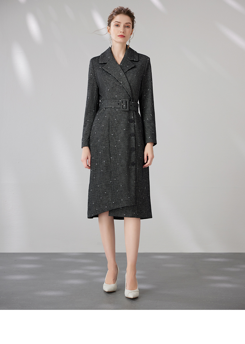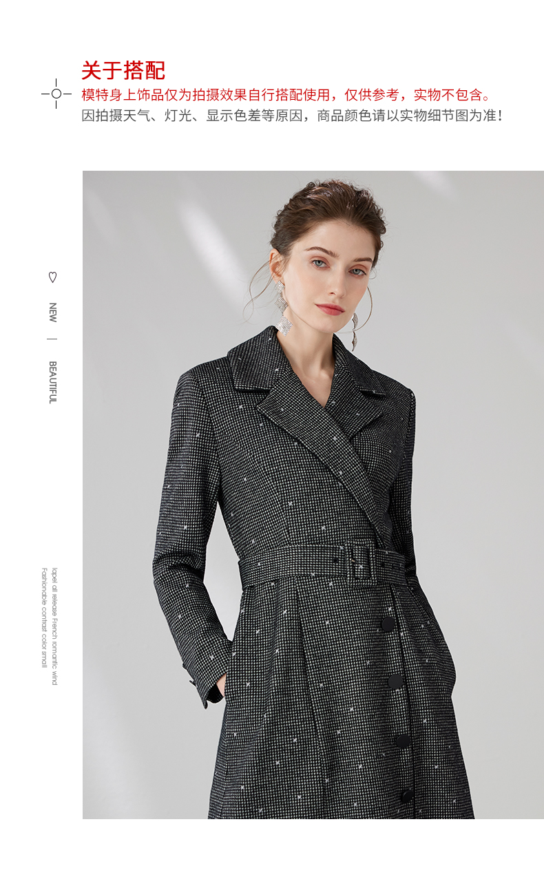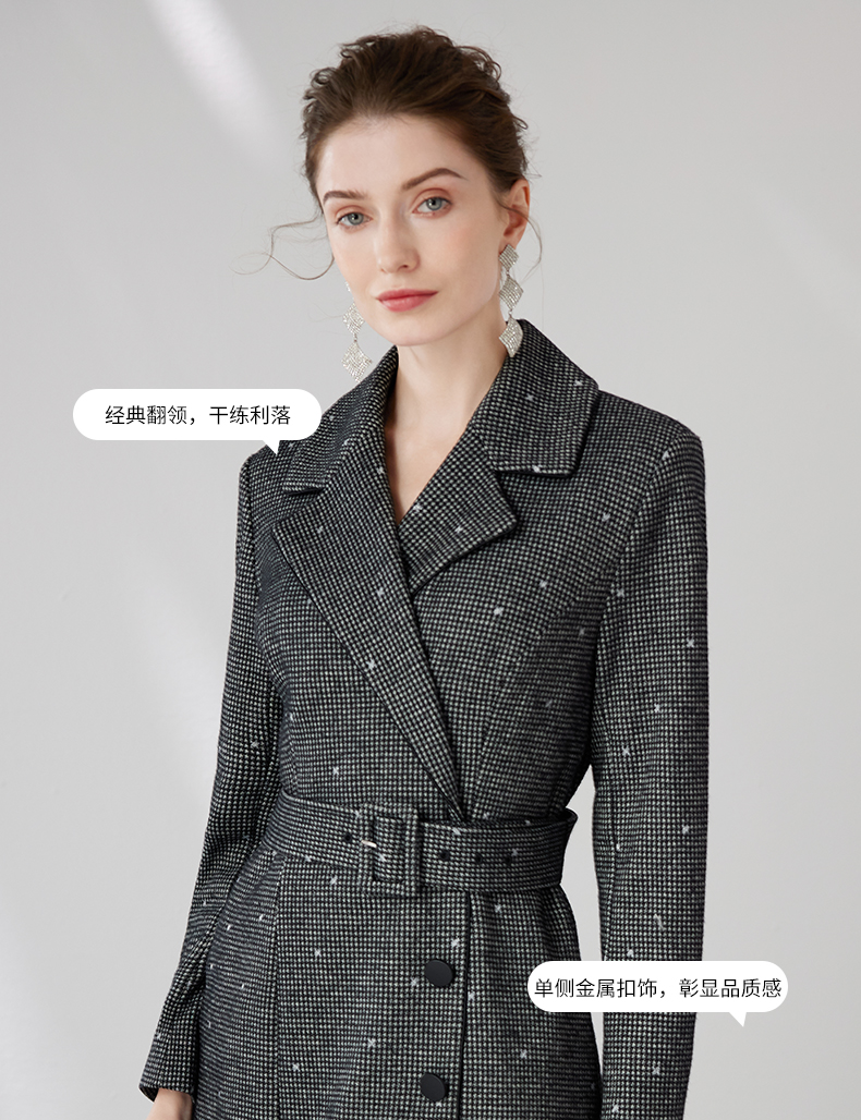 EITIE爱特爱冬季新款时尚洋气复古显瘦收腰系带连衣裙女裙6807525