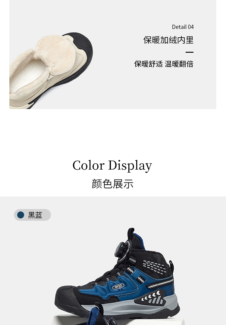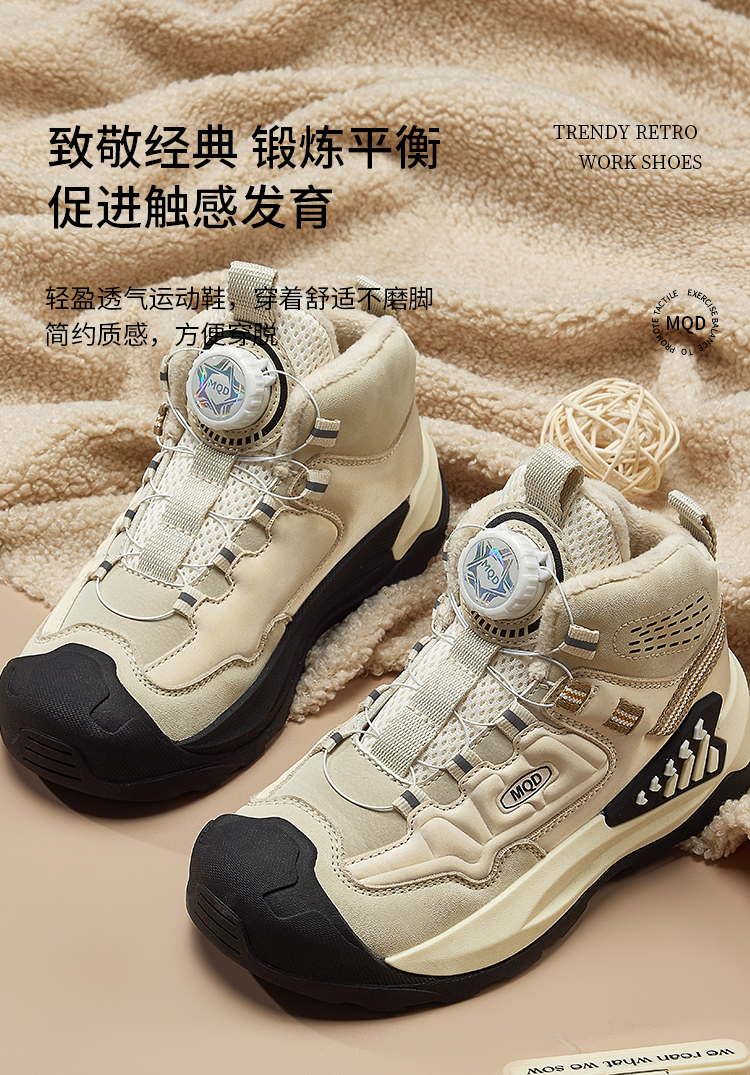【ZY马骑顿】儿童旋转扣秋冬新款男童二棉加绒防滑跑步鞋