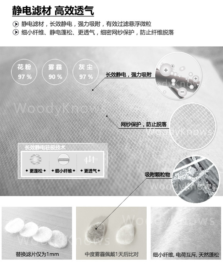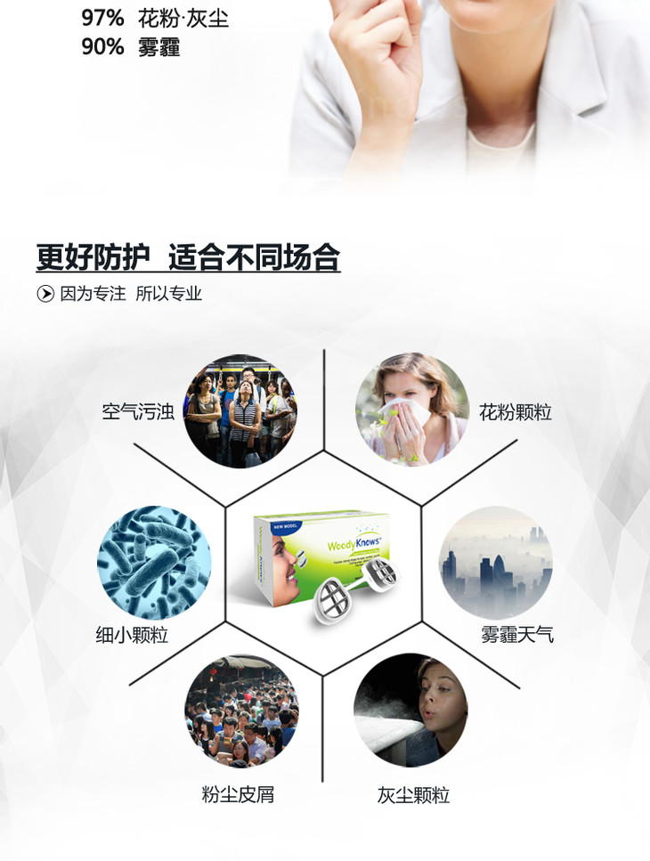 伍迪诺斯(WoodyKnows)隐形通用系列口罩鼻罩防尘防雾霾防花粉 大/中/小号外框各1组(已组滤片)+滤片各1对