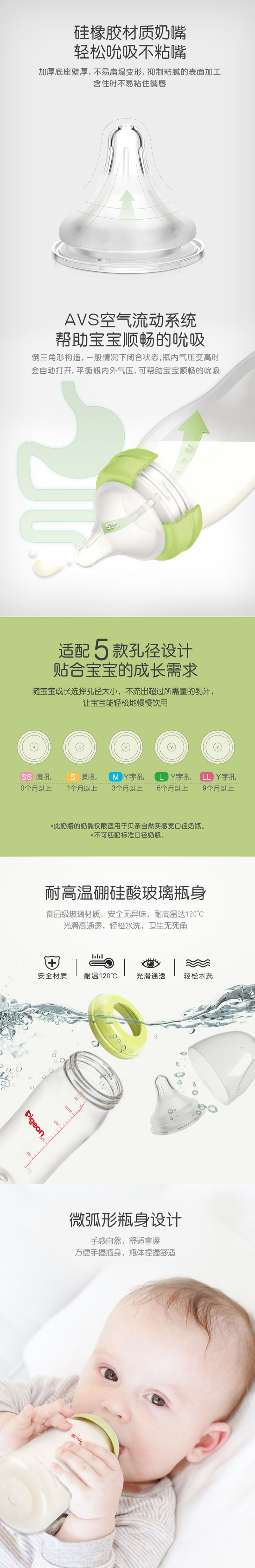 贝亲-自然实感宽口径玻璃奶瓶240ml/160ml