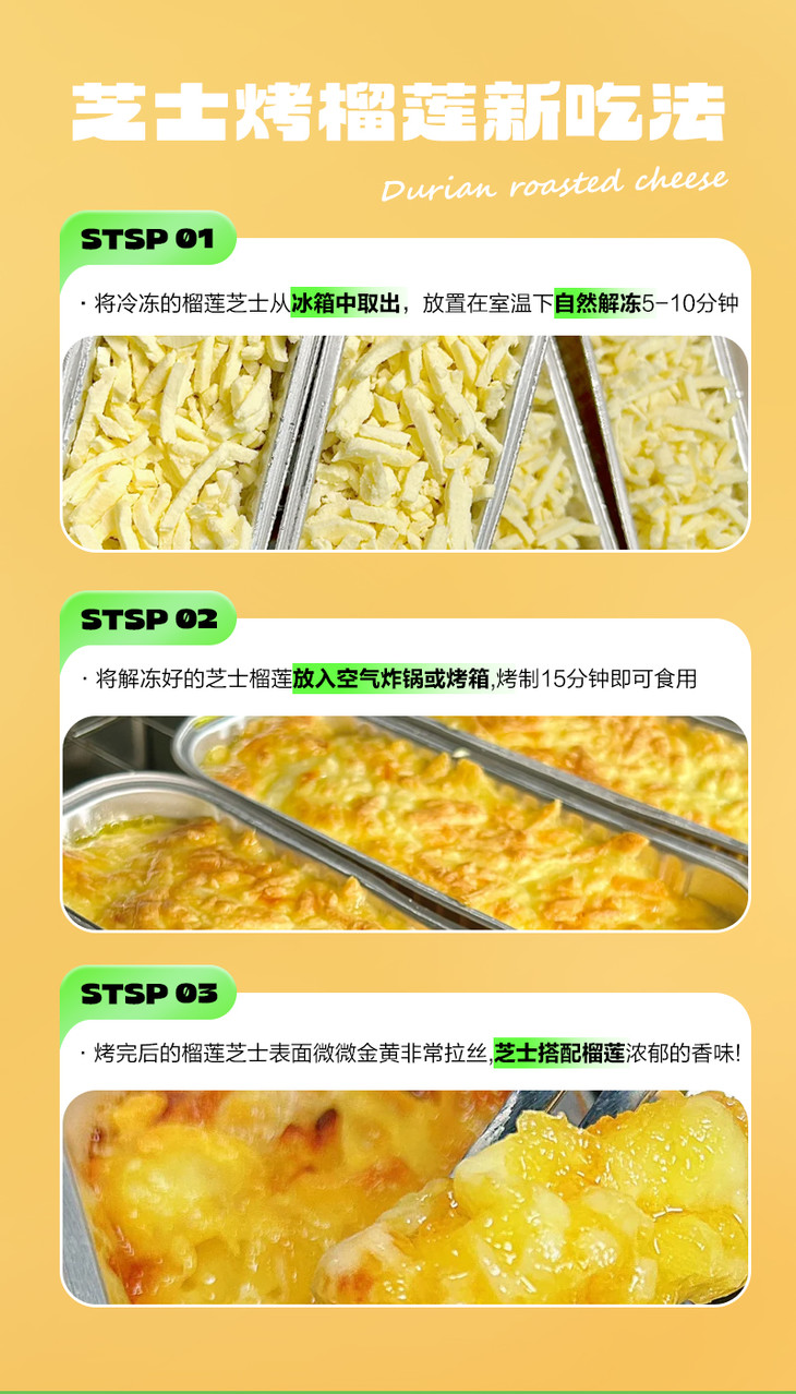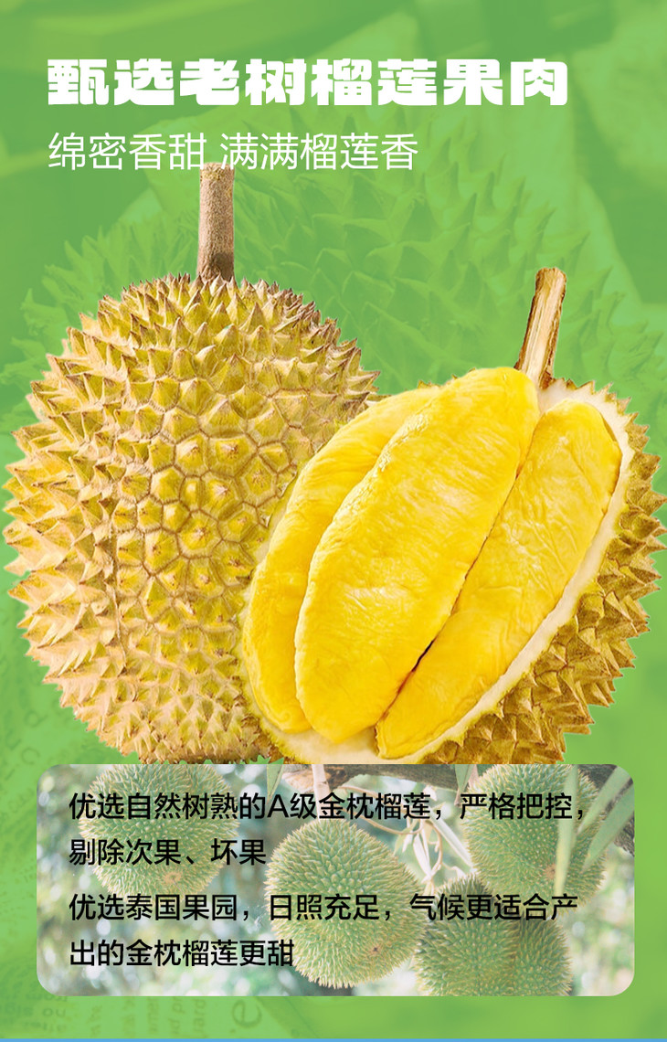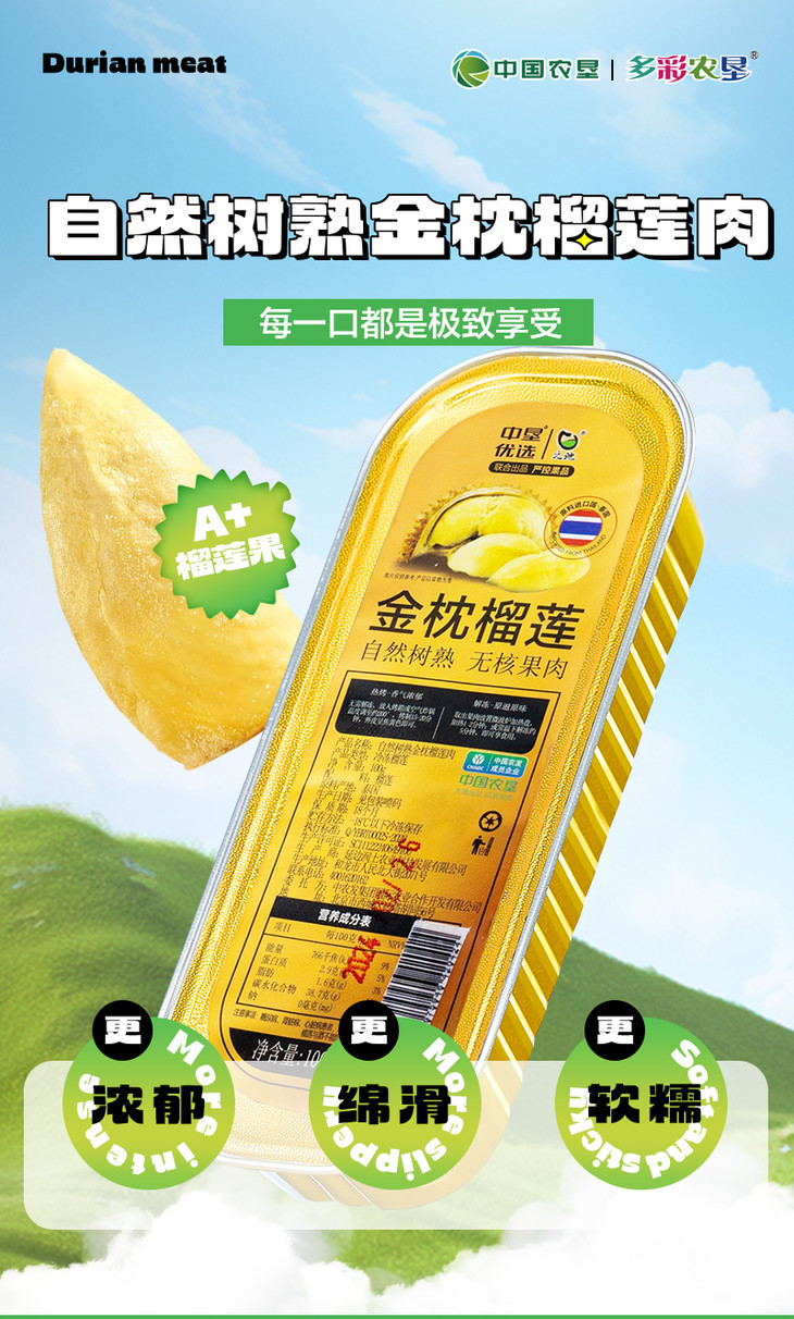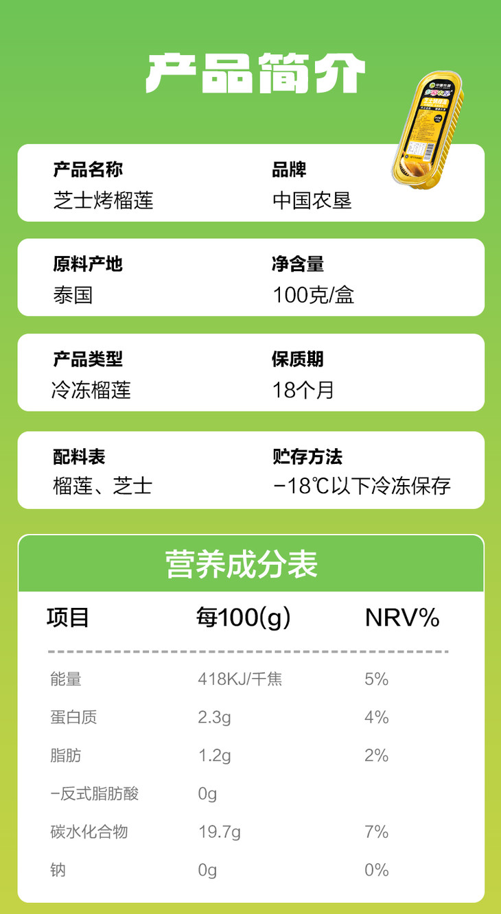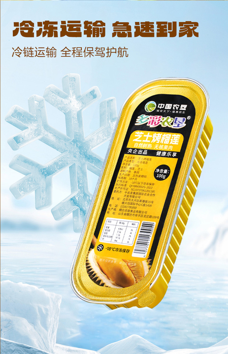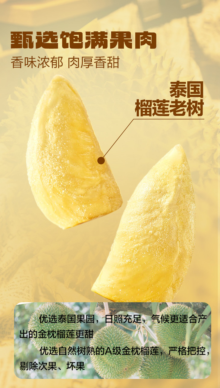 “泰国进口A级果 央企旗下品牌”多彩农垦 金枕榴莲无核果肉小金条/芝士烤榴莲 顺丰冷链发货 100g/盒