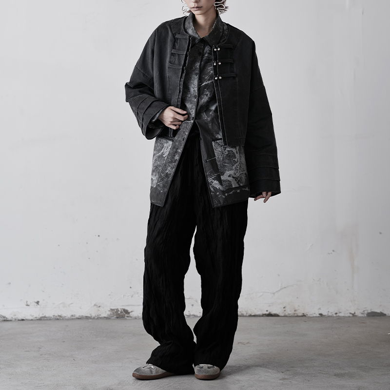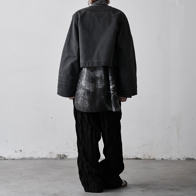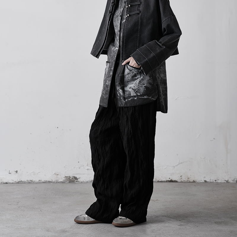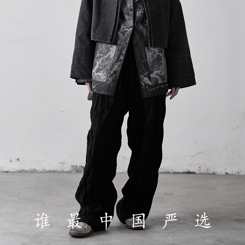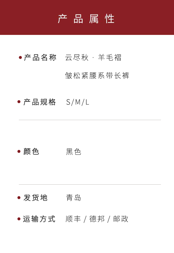 不裁 云尽秋·羊毛褶皱松紧腰系带长裤
