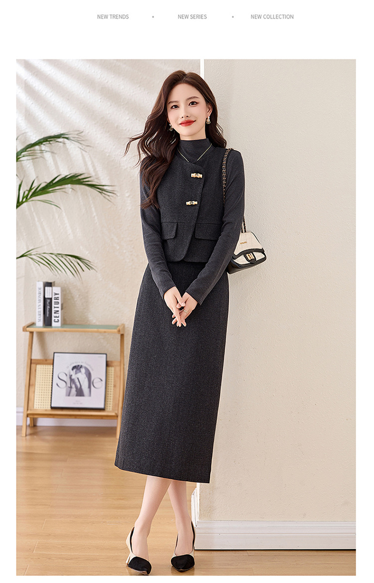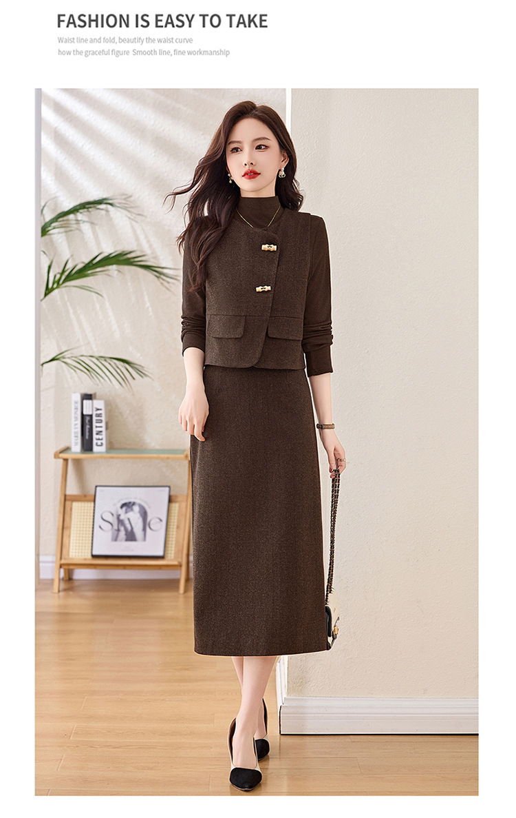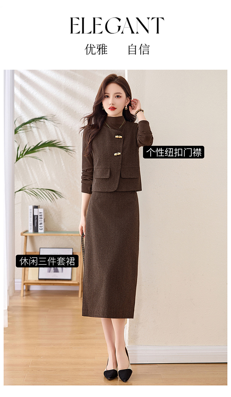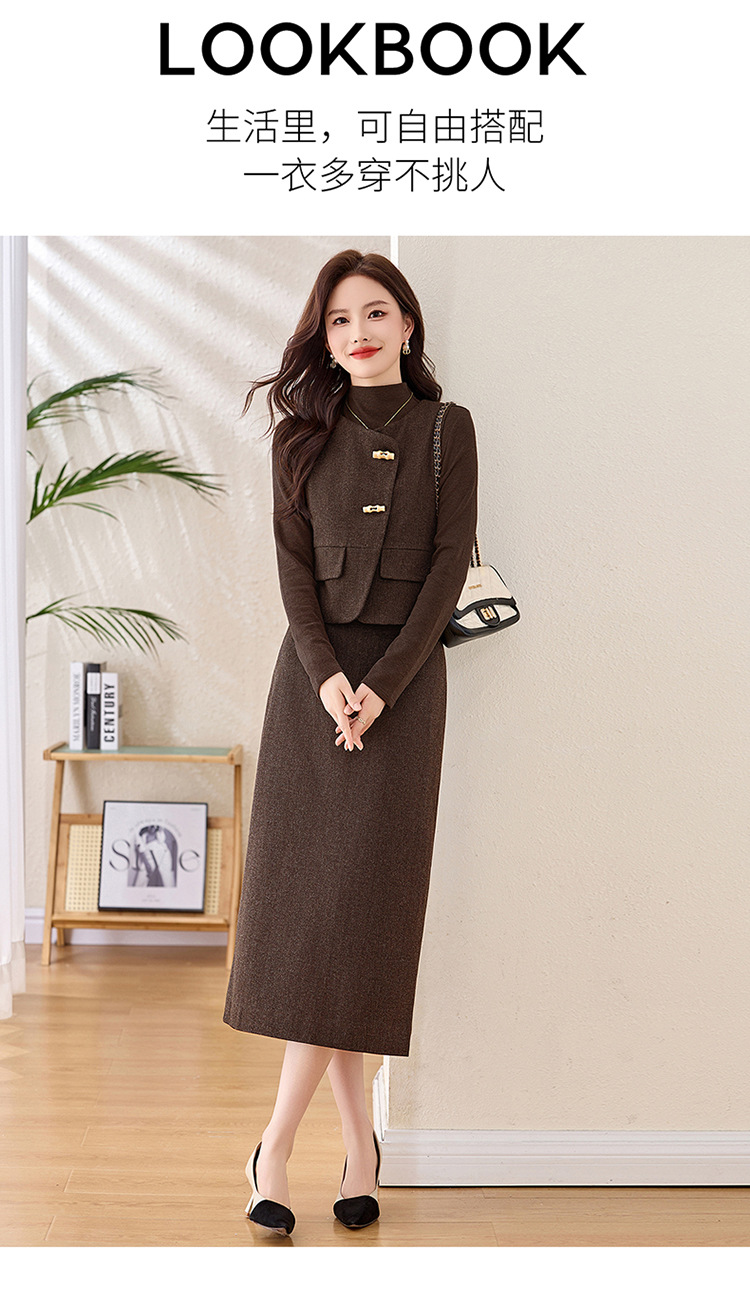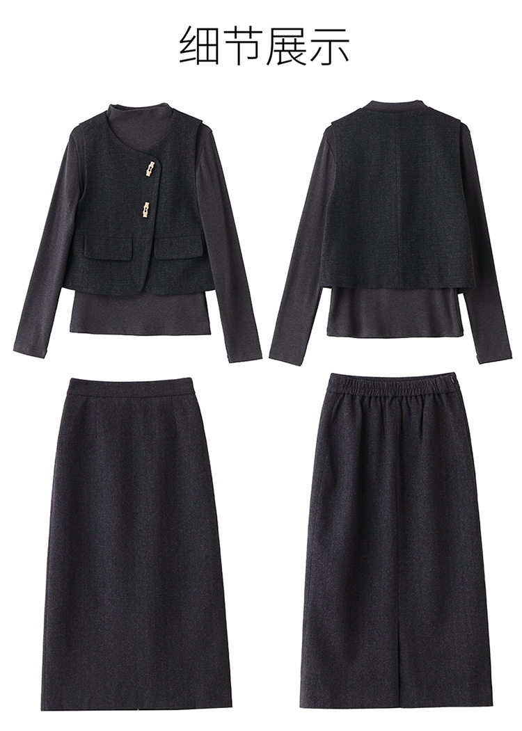 HR MEIQIN5502都市风马甲套装时尚修身法式洋气减龄半身裙三件套 商品图0