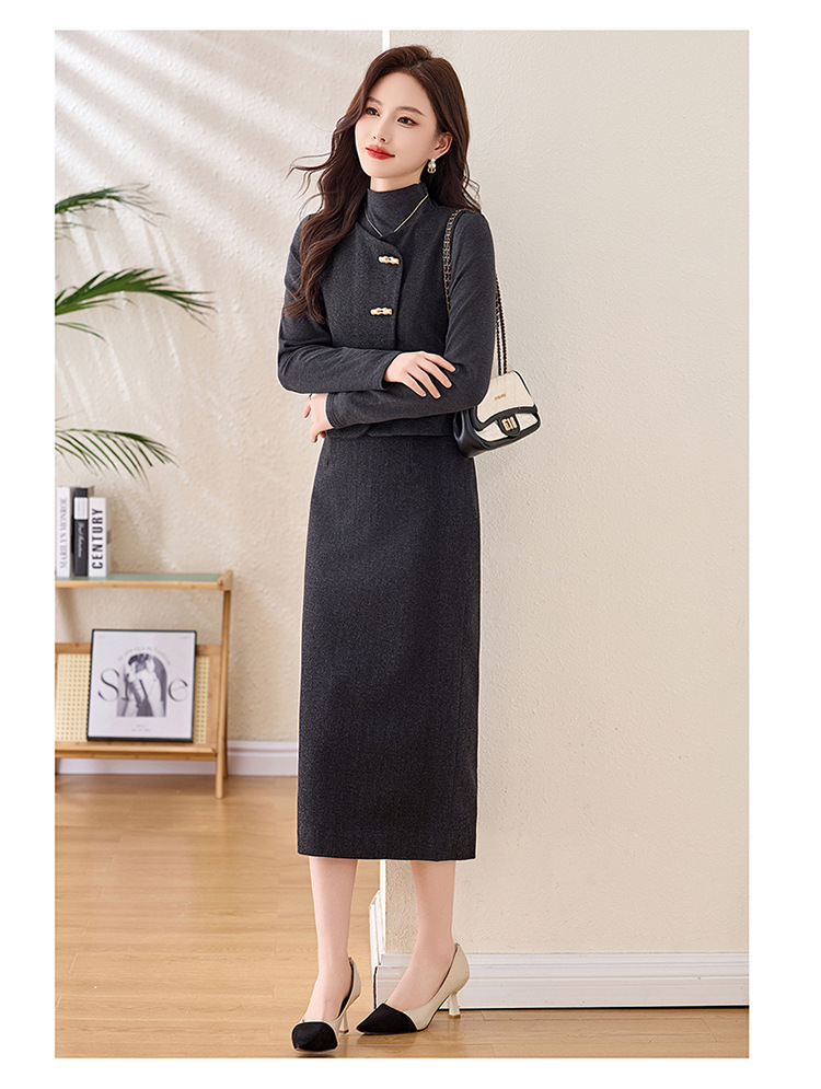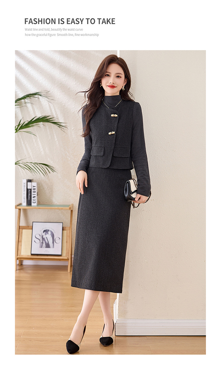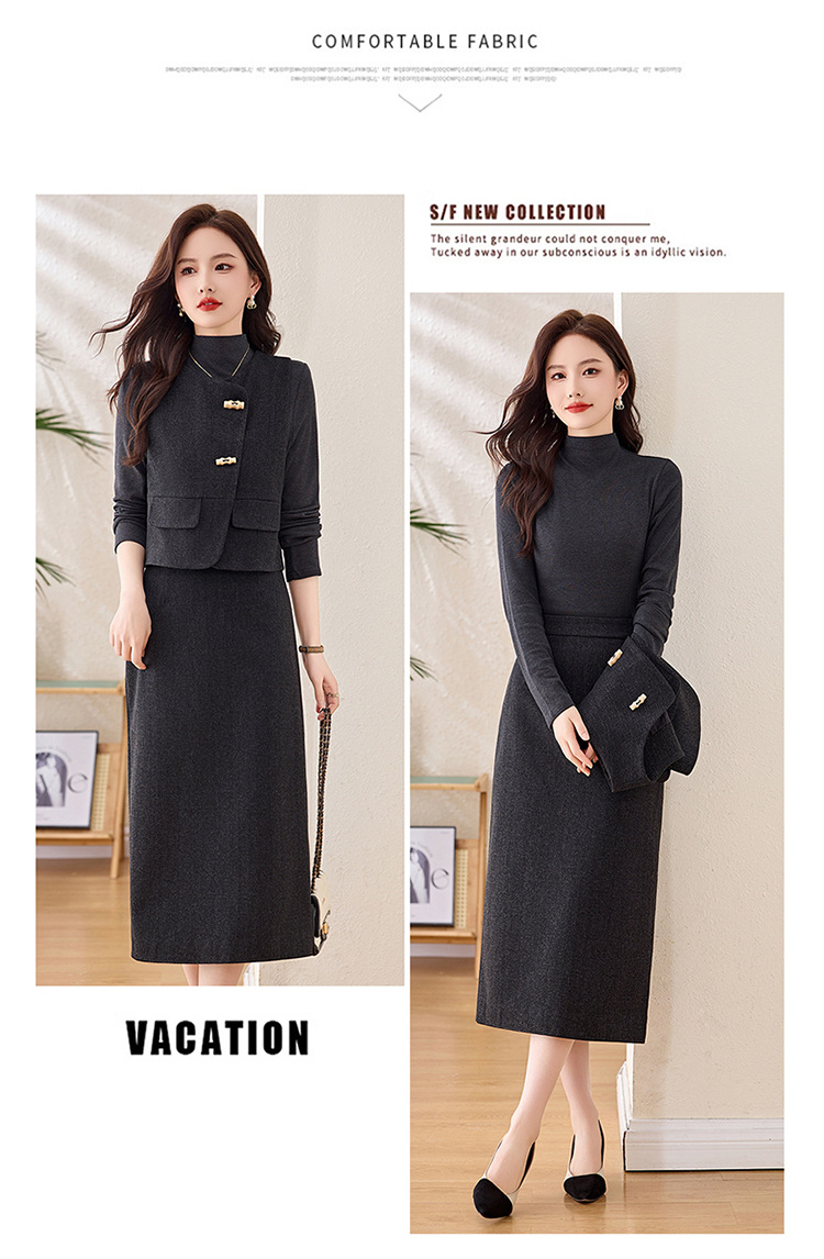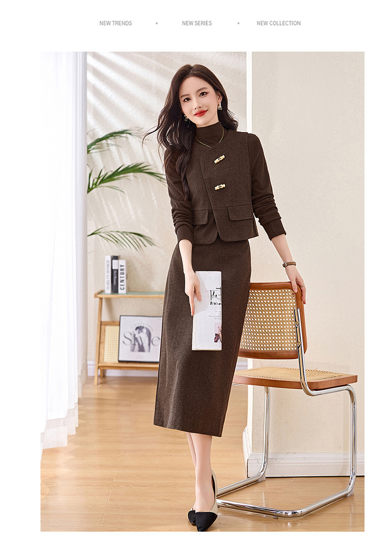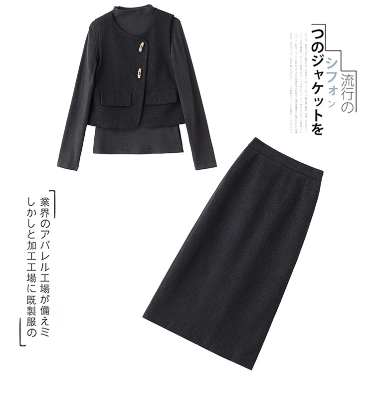 HR MEIQIN5502都市风马甲套装时尚修身法式洋气减龄半身裙三件套 商品图0