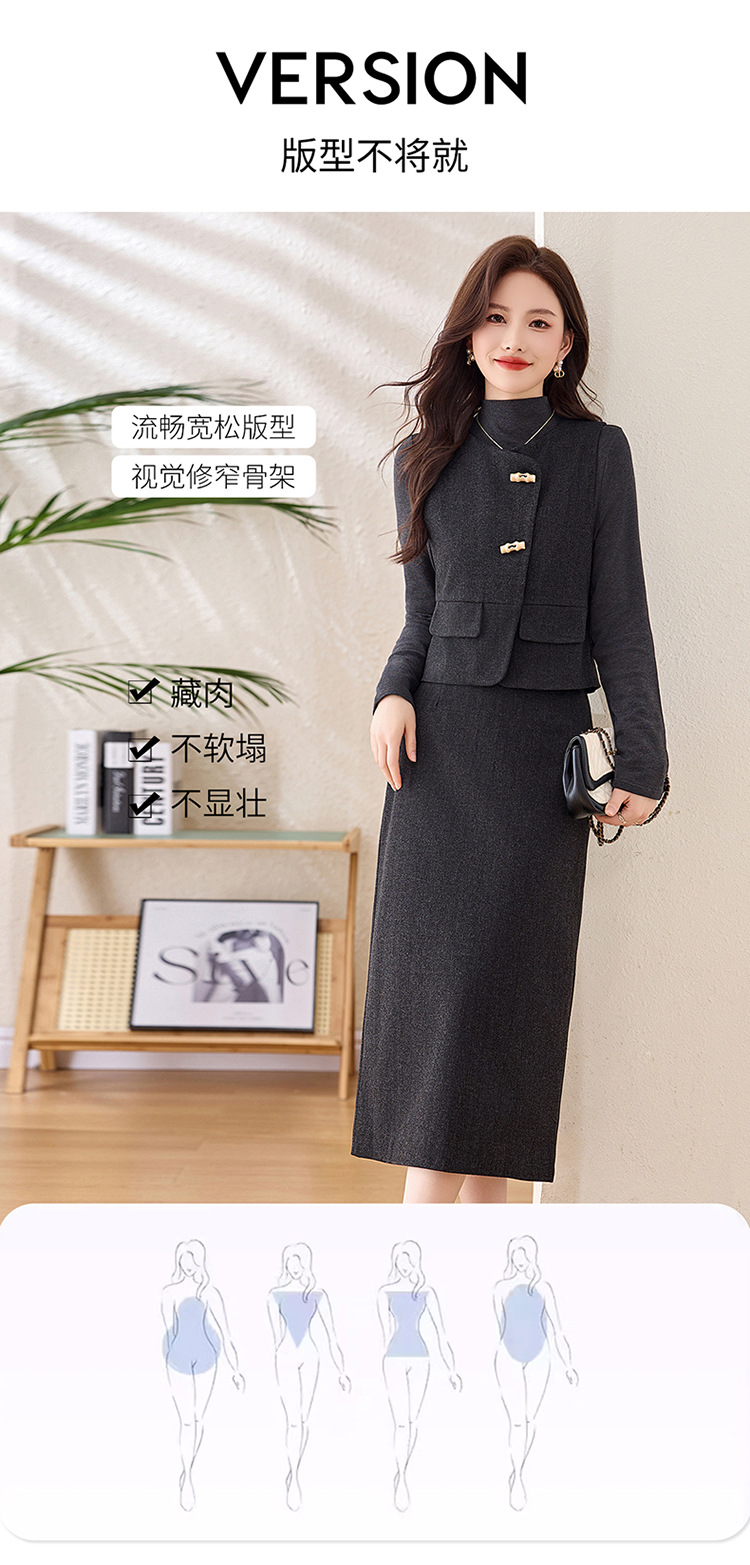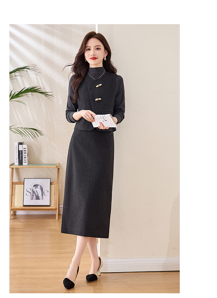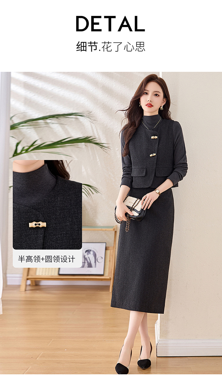 HR MEIQIN5502都市风马甲套装时尚修身法式洋气减龄半身裙三件套 商品图4