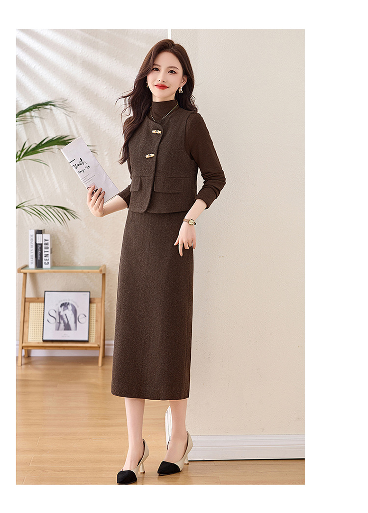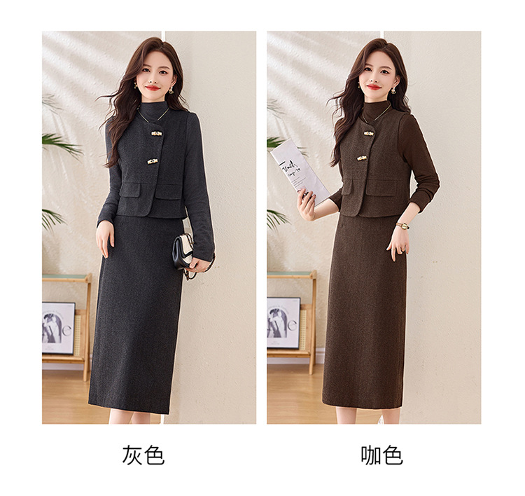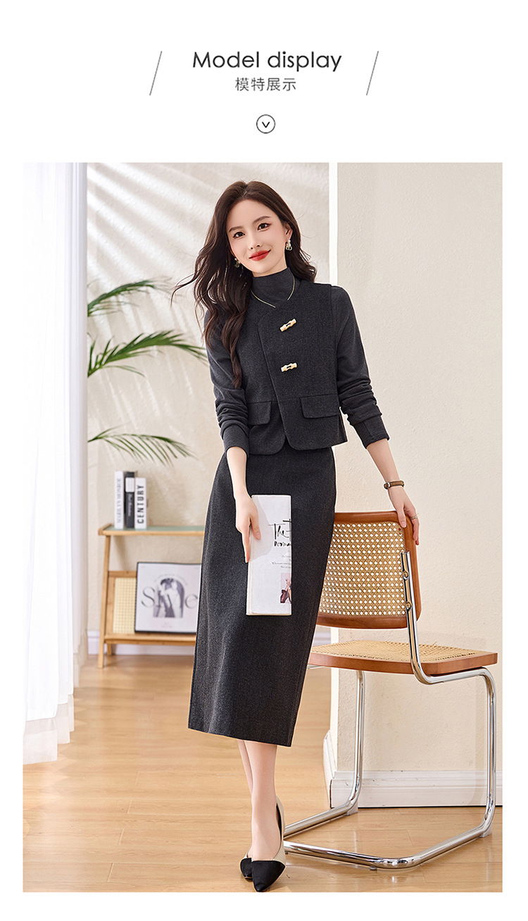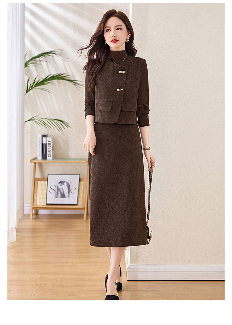 HR MEIQIN5502都市风马甲套装时尚修身法式洋气减龄半身裙三件套 商品图3